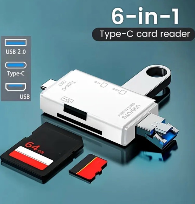 Brand new, price firm. $10 each. 6-in-1 High-Speed Card Reader & OTG Converter - USB Type-C, TF/SD Camera Adapter, Plug & Play, Portable Design