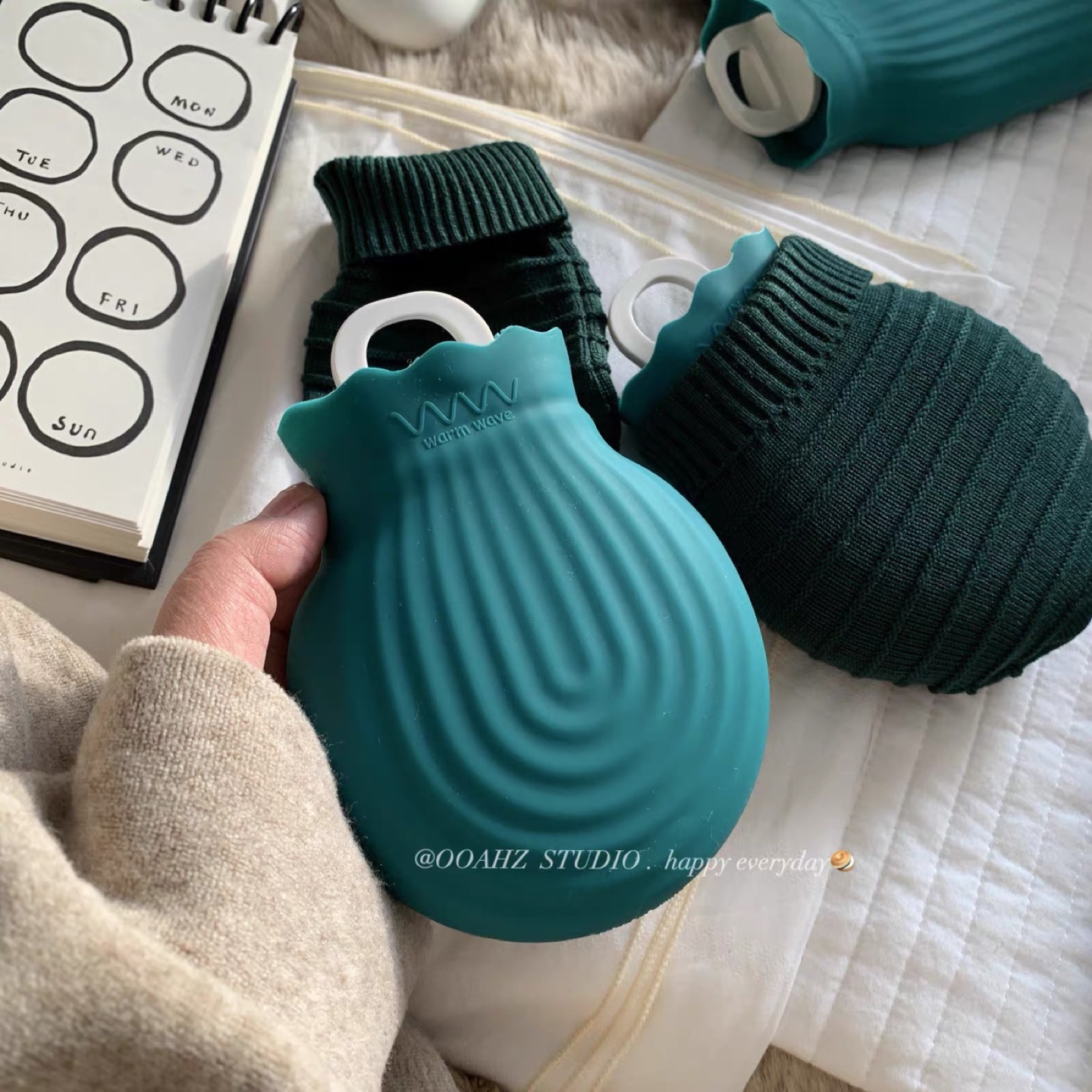 Cozy up with this cute Warm Wave hot water bottle! It comes with a soft, knitted cover to keep you extra warm and comfy. Perfect for those chilly Canadian evenings!