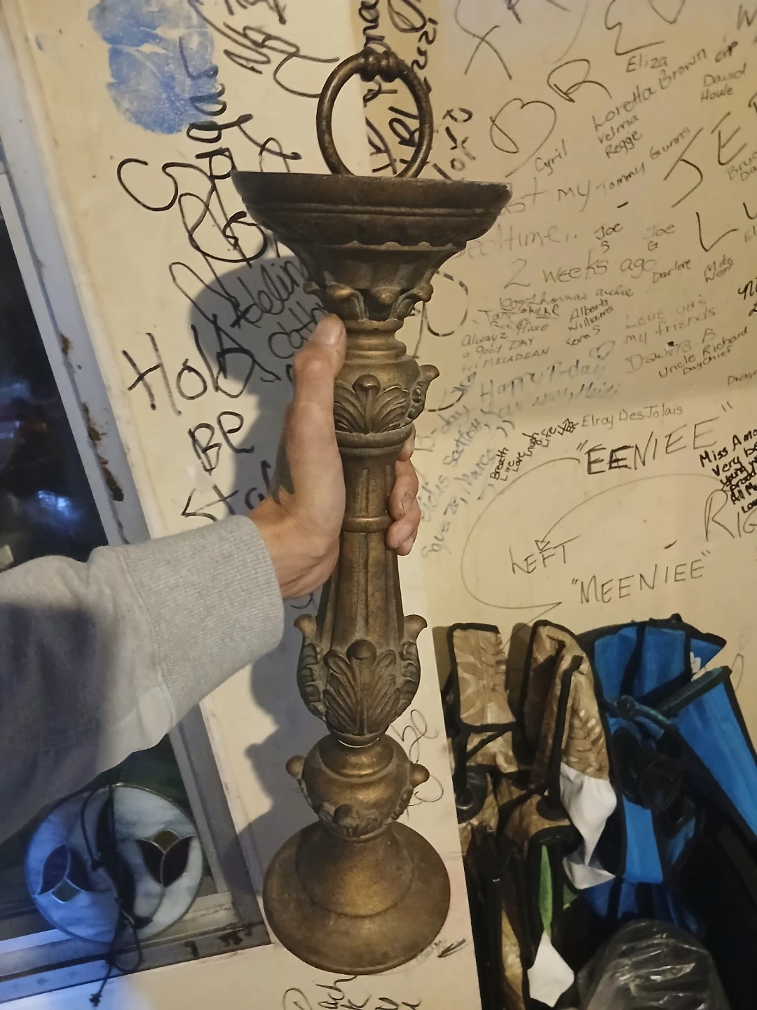 Selling a vintage metal candle holder. It has a unique design with a handle on top. It would be a great addition to any home! ( that's what it says but I don't know what do you think?)