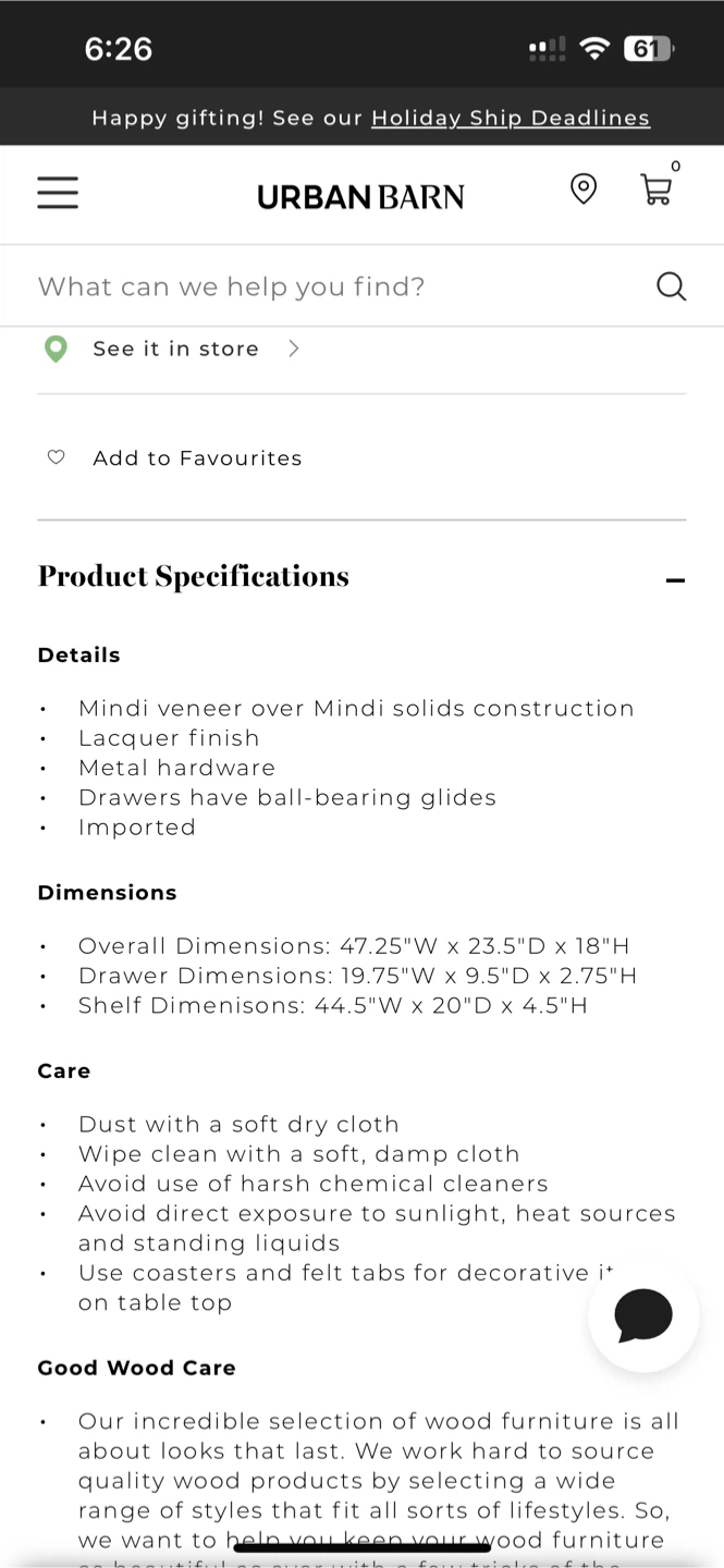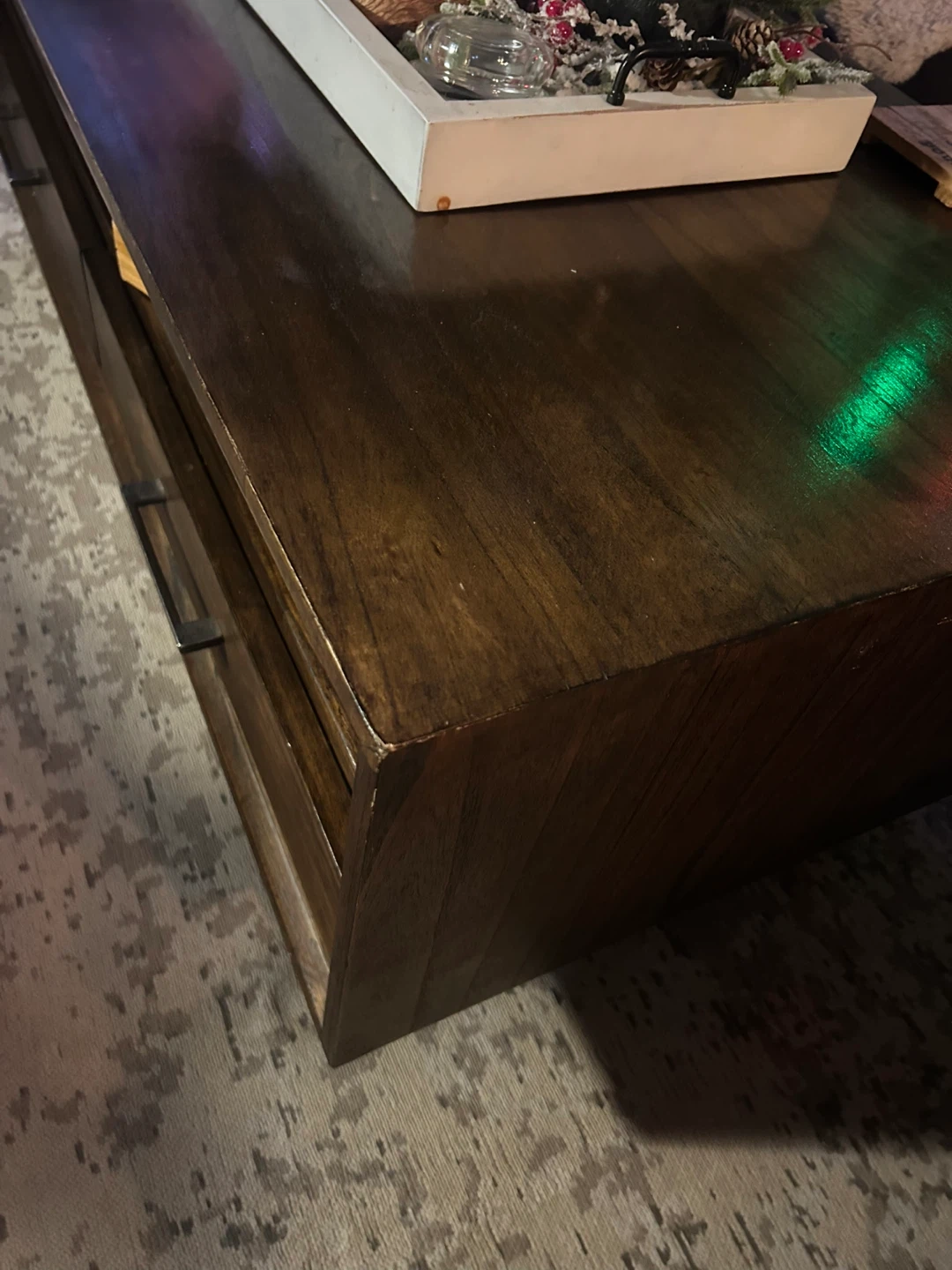 Selling a coffee table from Urban Barn. It's in great shape and has a beautiful dark wood finish. 2 drawers in each side.