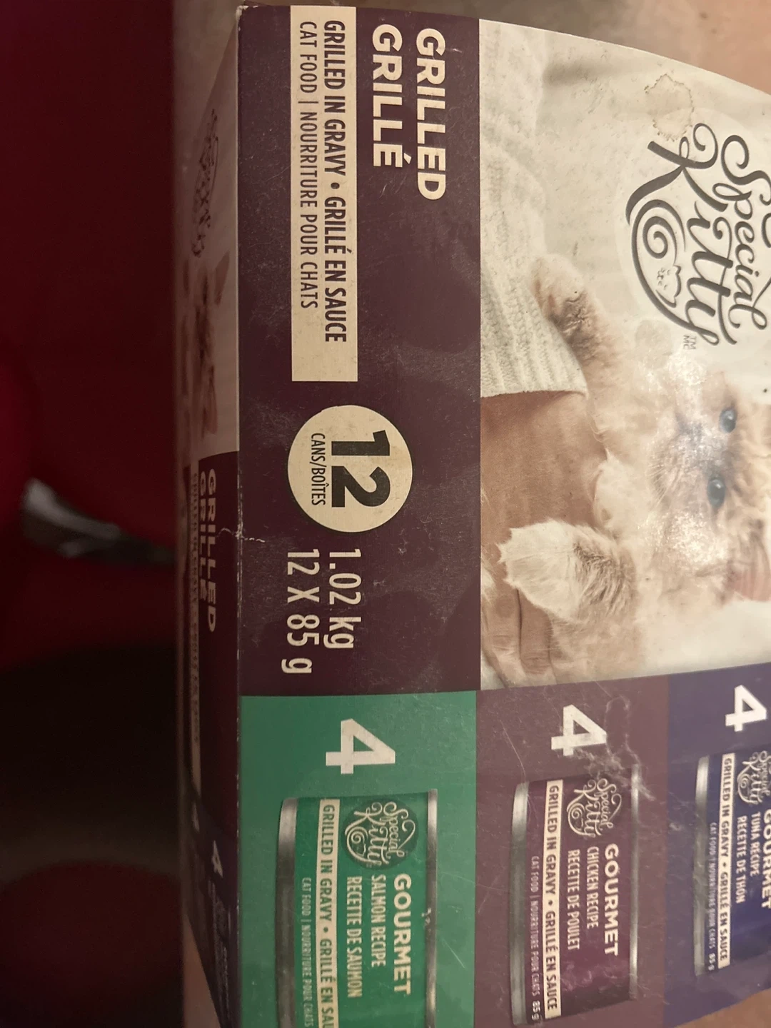 Selling a box of Special Kitty cat food! This includes 8 cans out of 12 , with a mix of grilled and gourmet recipes. Your kitty will love the variety! My cat did not like it.