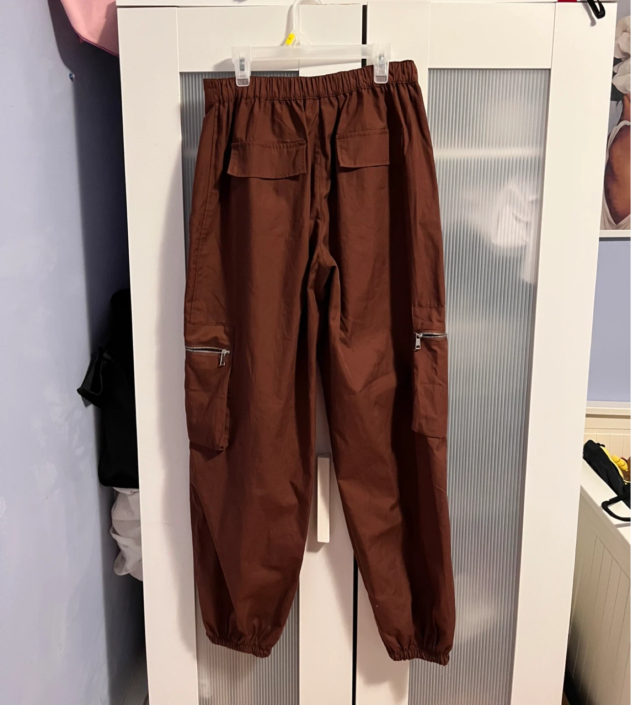 *Very stylish* Selling a pair of Sweet Envy cargo pants in a lovely brown colour! They're a size medium and have a comfortable, relaxed fit. Perfect for everyday wear or a casual outing!