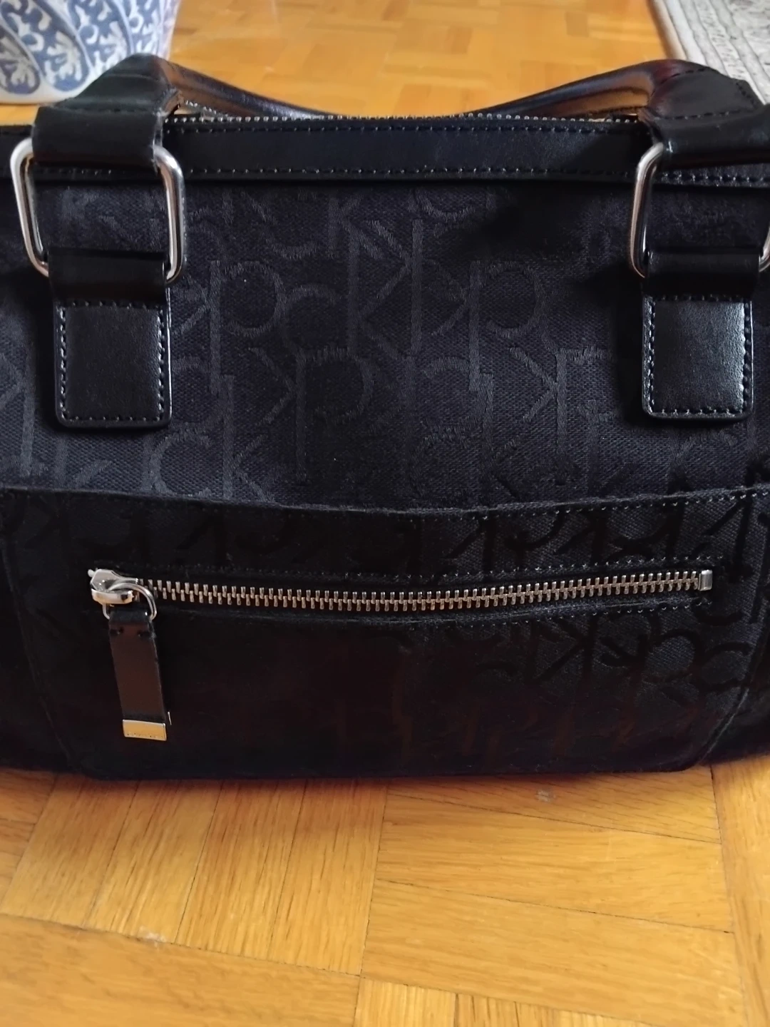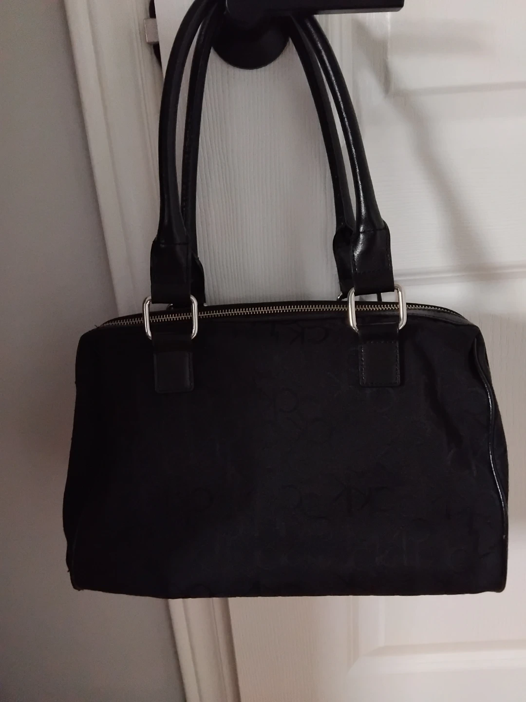 Selling a Calvin Klein handbag in black. It's in great condition and has a zipper pocket on the front. Perfect for everyday use!