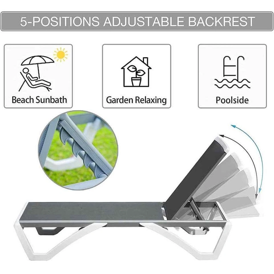 The Domi Outdoor Living Adjustable Chaise Lounge is not only built for comfort but also engineered for durability. The chair features an aluminum frame that provides sturdy support, ensuring its longevity and reliability. The high-quality plastic triangular structure legs further enhance stability, making this lounge chair capable of supporting up to an impressive 350 lbs.
