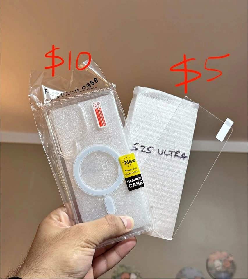 Clear phone case and screen protector for S25 Ultra.