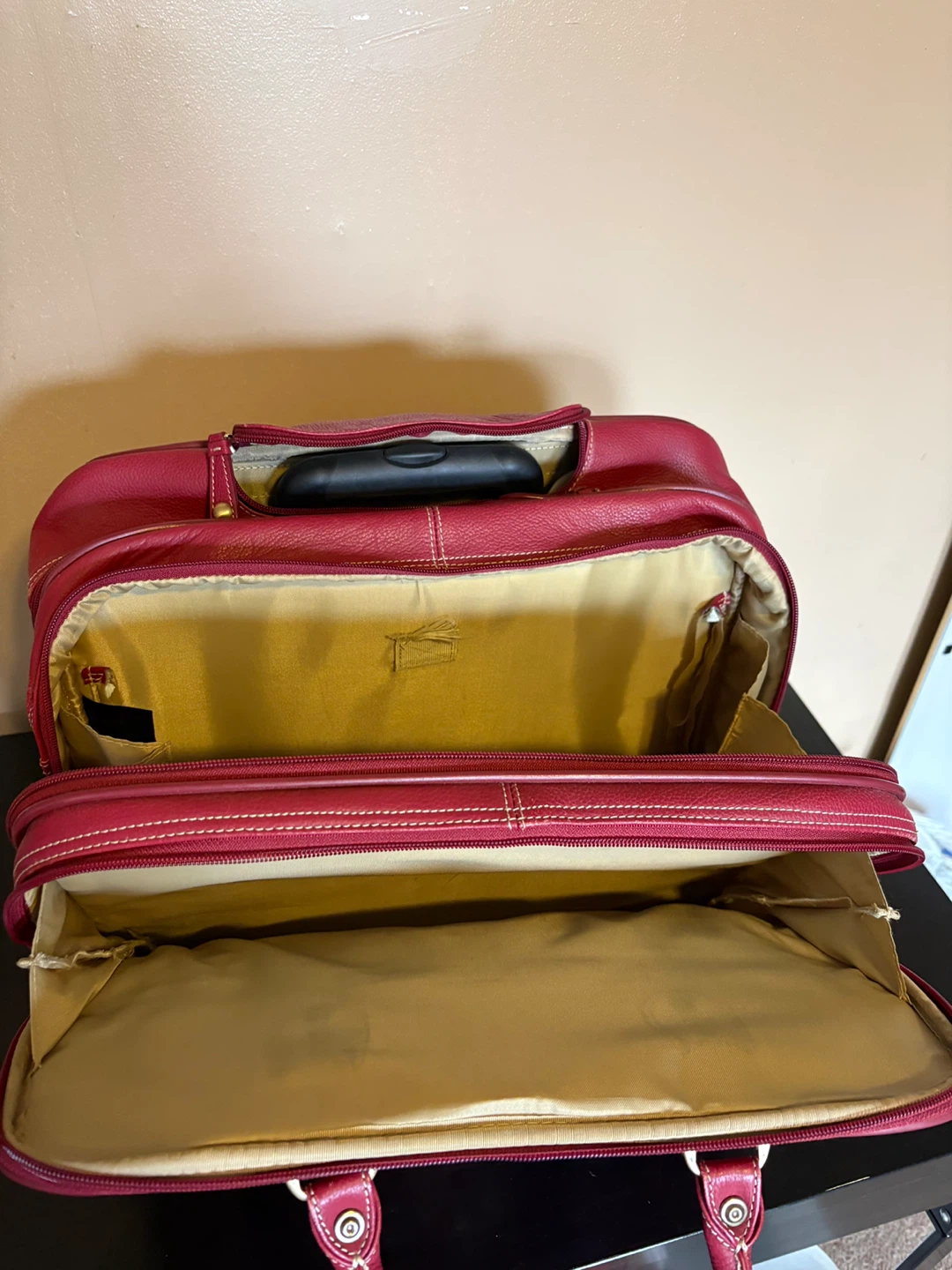 1 / 21 / 2Buy & SellBagBag$20This is a stylish red leather rolling laptop bag. It's perfect for carrying your laptop and other essentials while traveling or commuting. The bag is in good condition and has plenty of storage space.WHERE TO MEETW 104th StreetView MapSELLERverifiedMichaelUpper West Side1609 reviews1 chats·1 favorites·25 viewsSEND CHAT TO SELLERHi Michael! I’m interested in your listing.Hi Michael! I’m interested in your listing.Get the Karrot app to chatSign In to chat