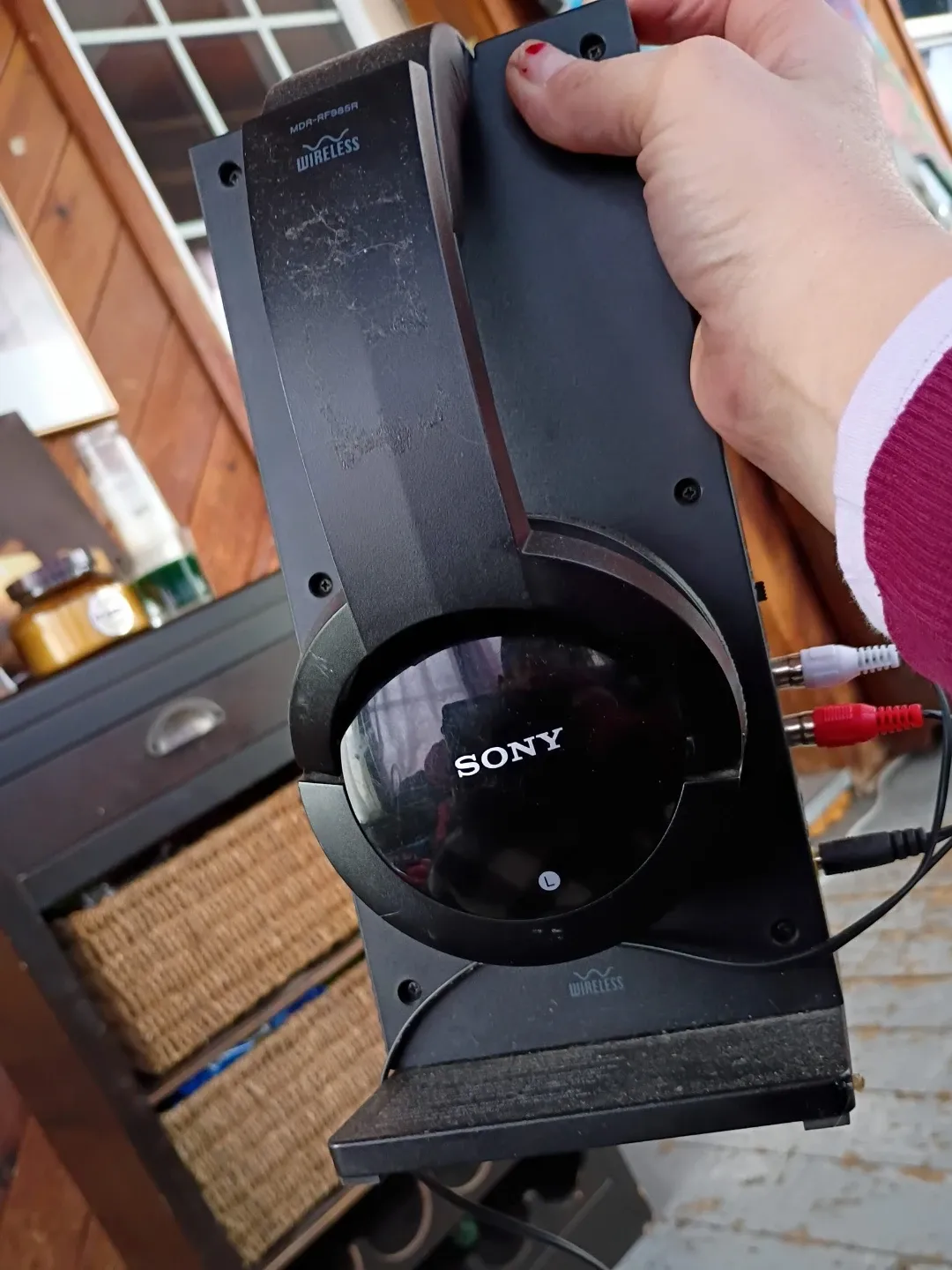 Selling a pair of Sony MDR-RF985R wireless headphones. They come with the charging dock and all the necessary cables. Please note the earcups show signs of wear.
