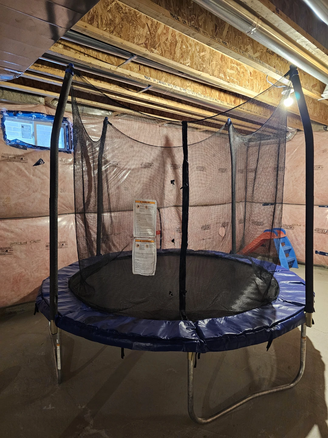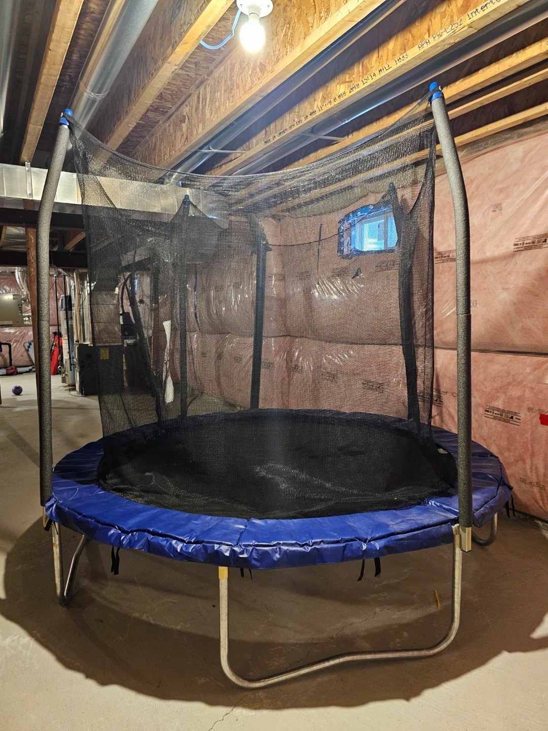Selling an 8 ft wide trampoline with a safety net. The height is 87 inches and the height to the trampoline surface is 22 inches. In a great condition. Perfect for some backyard/basement fun!