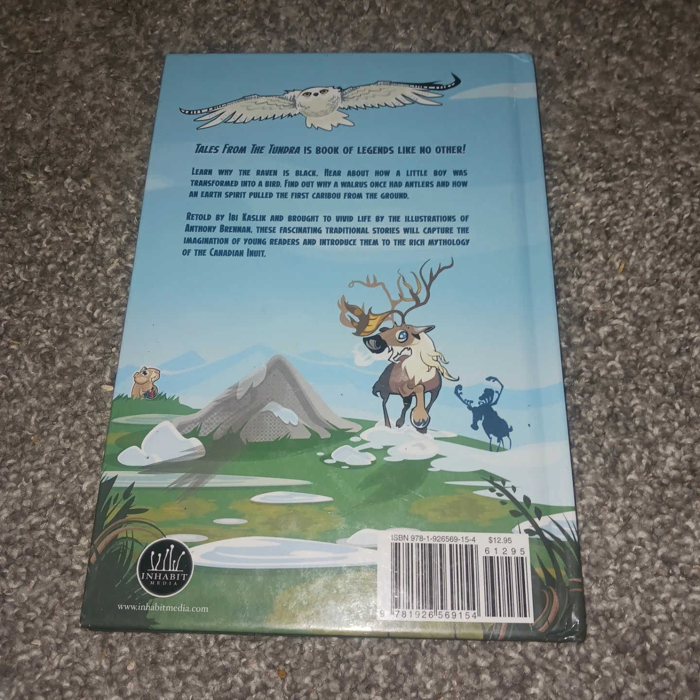 Selling a copy of "Tales from the Tundra: A Collection of Inuit Stories"! It's a book of legends, retold by Ibi Kaslik and illustrated by Anthony Brennan. Discover how a walrus once had antlers and how an Earth spirit pulled the first caribou from the ground