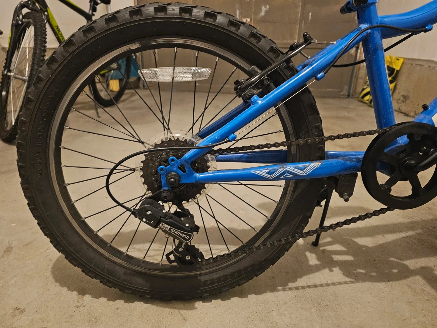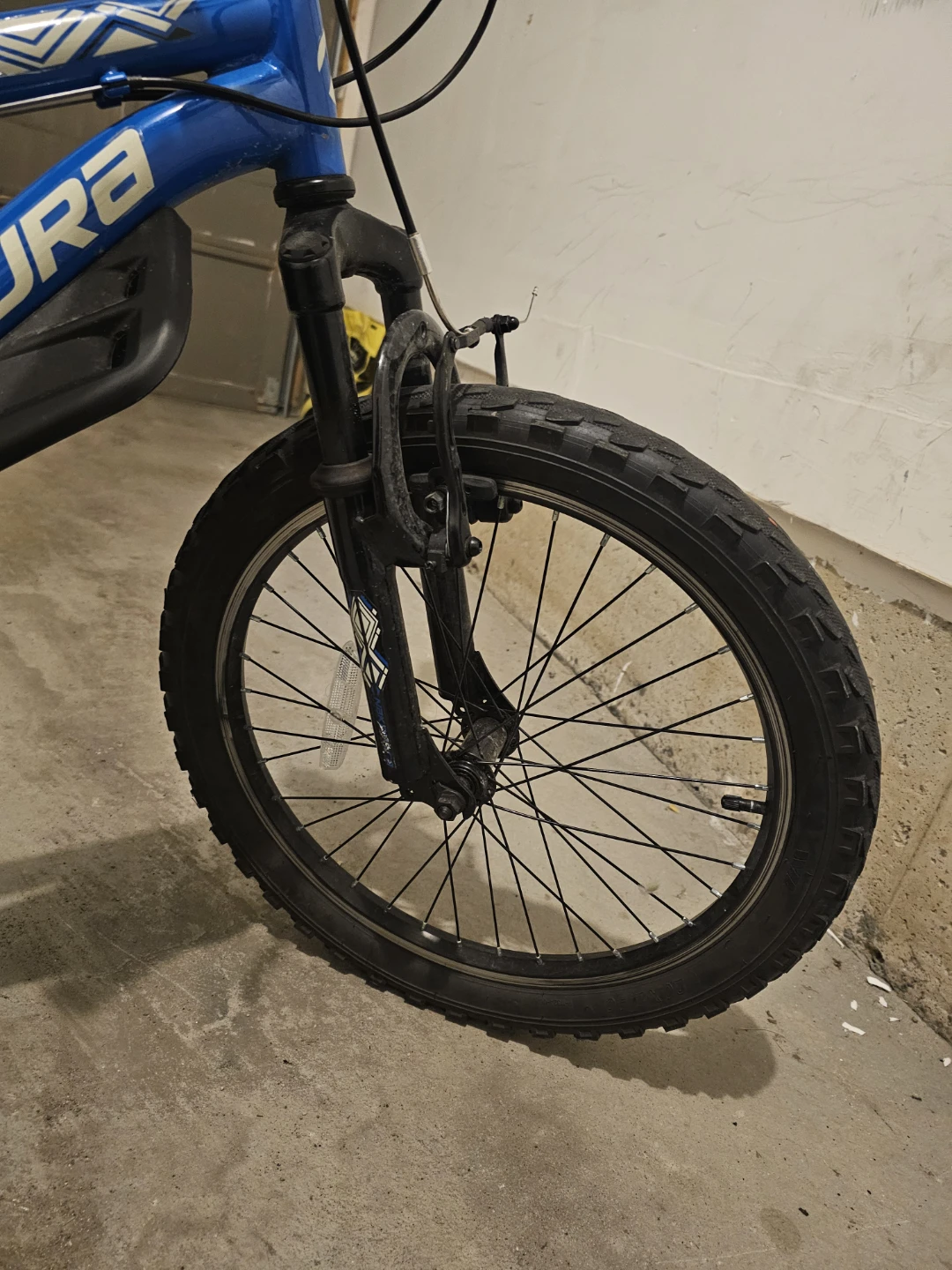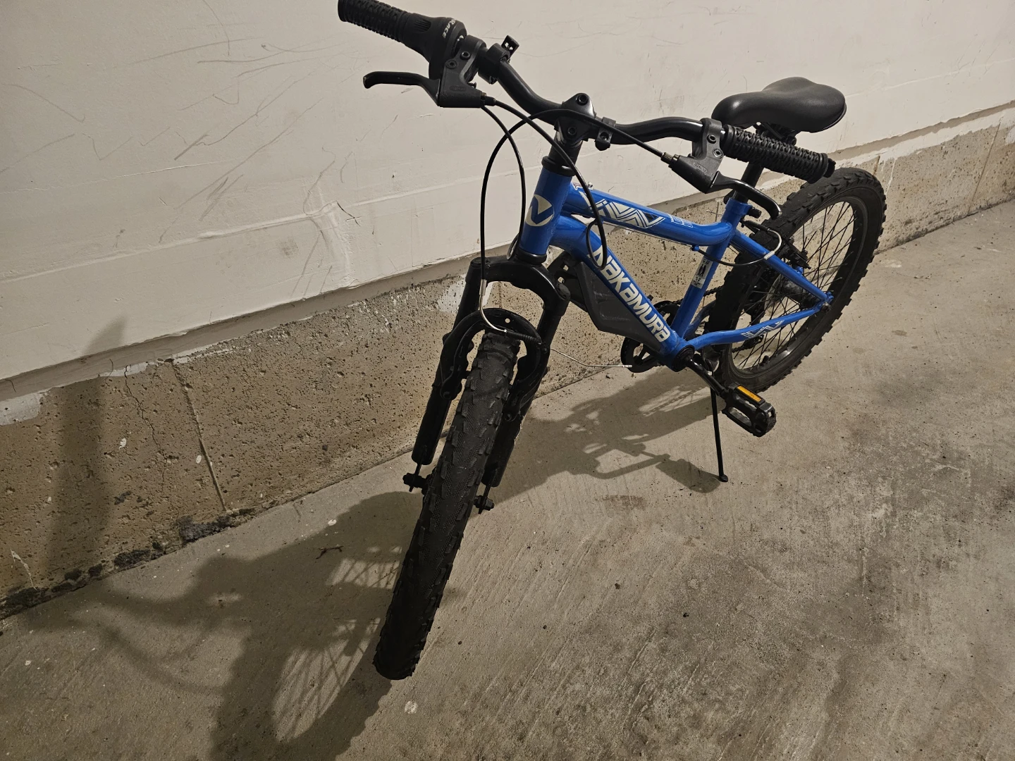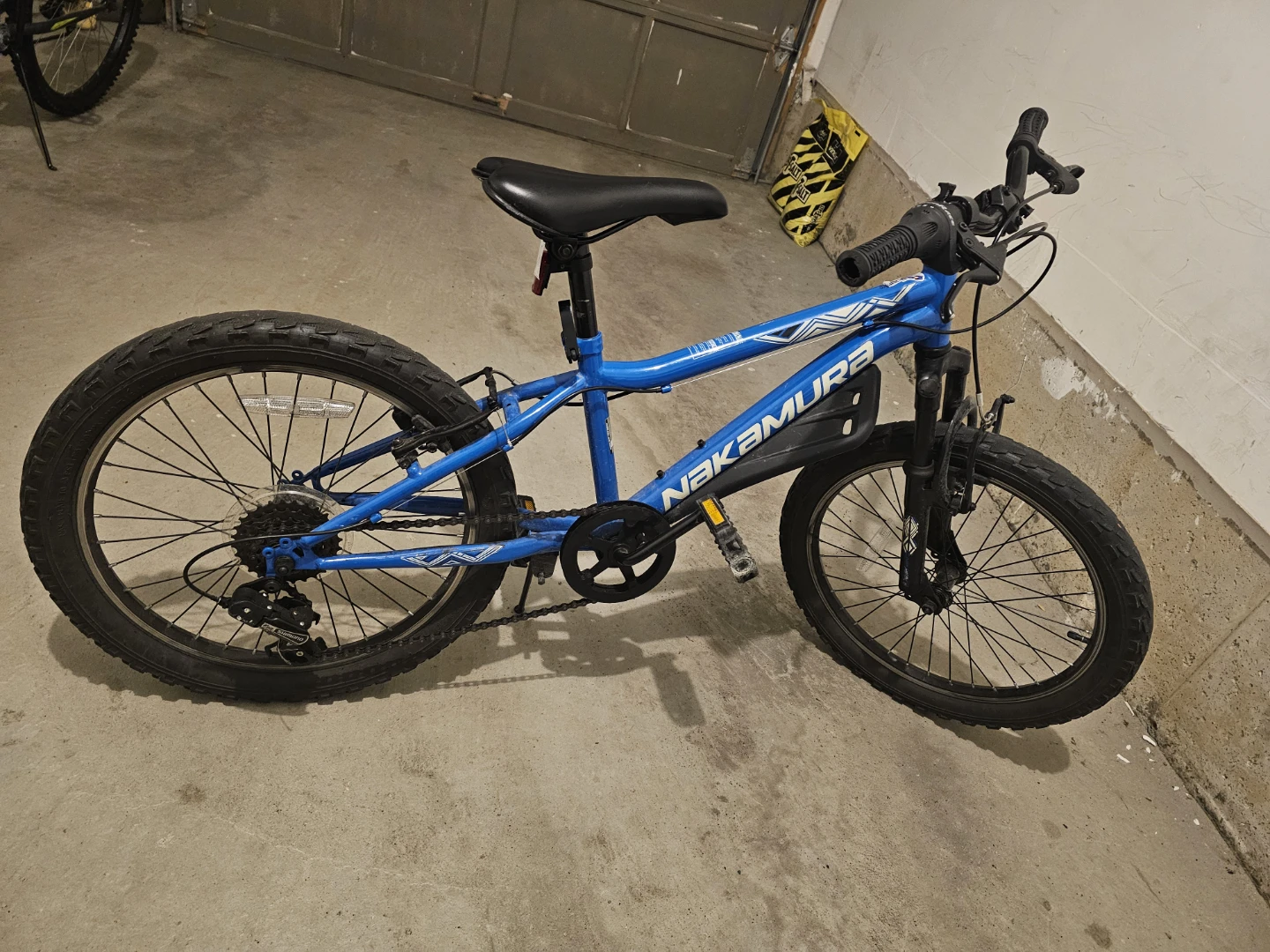 Selling a blue Nakamura kids' bike, wheel size 20". It's in great condition and ready for a new rider! It has front shock absorbers and rear gears, all functional and work great.
