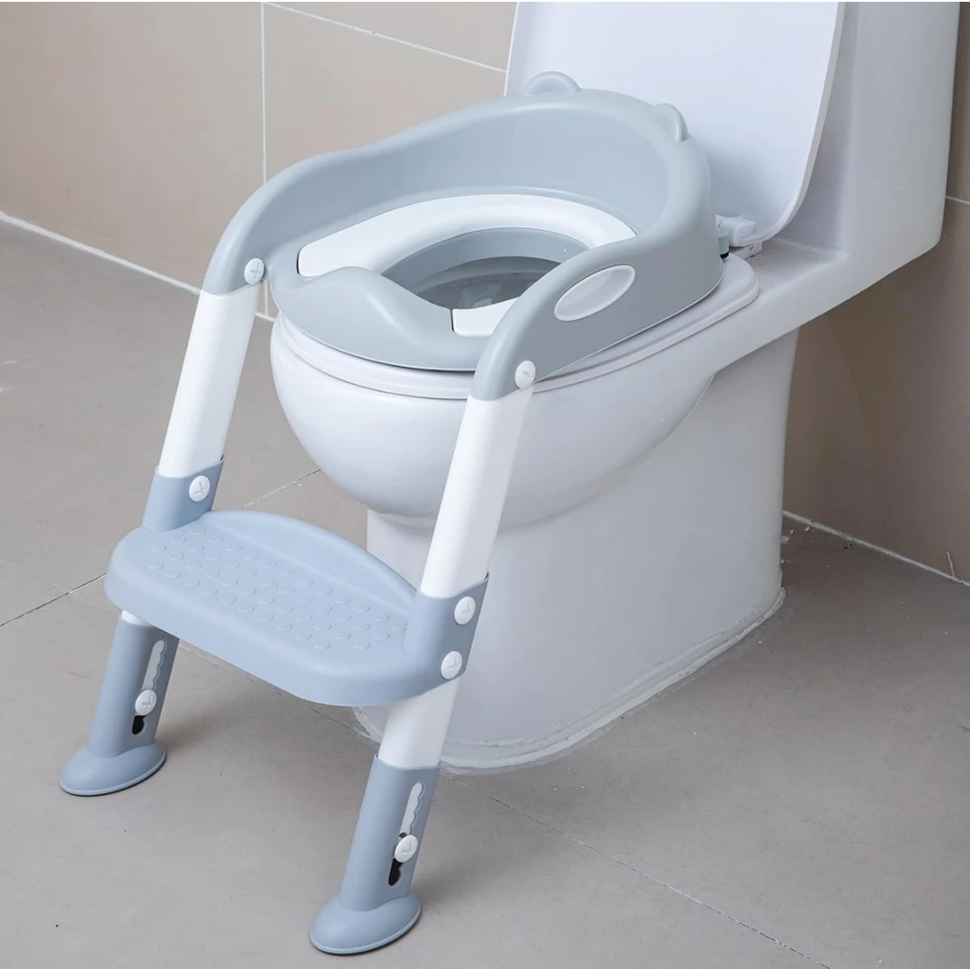 This foldable toilet training seat with a step stool is designed for easy use and storage! It features a stable and safe design with a double armrest, a non-slip mat, non-slip feet pads, and anti-skid footboards. The height is adjustable with six gears. It's also portable and space-saving, making it easy to fold and store when not in use