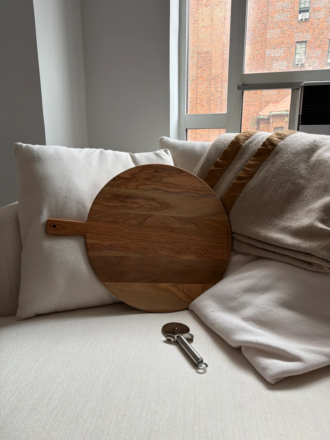 Giving away a round wooden pizza board, perfect for serving up your favorite homemade pizzas! It comes with a pizza cutter, so you're all set for pizza night. The board is in great condition and ready for a new home.