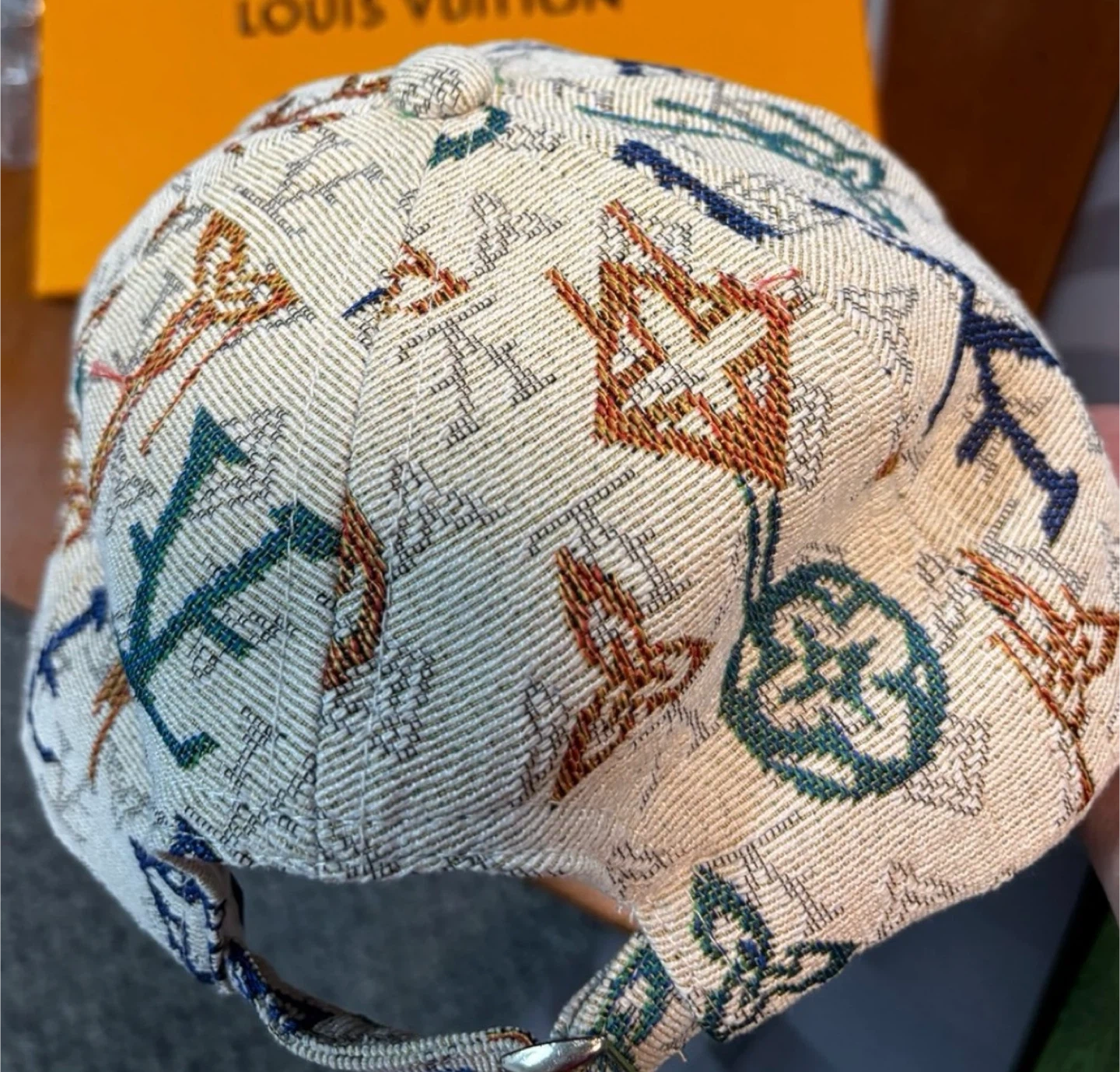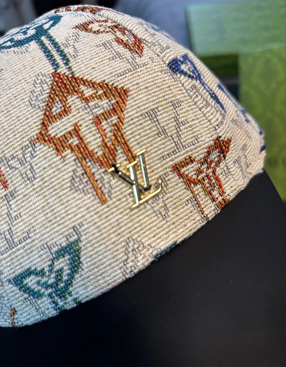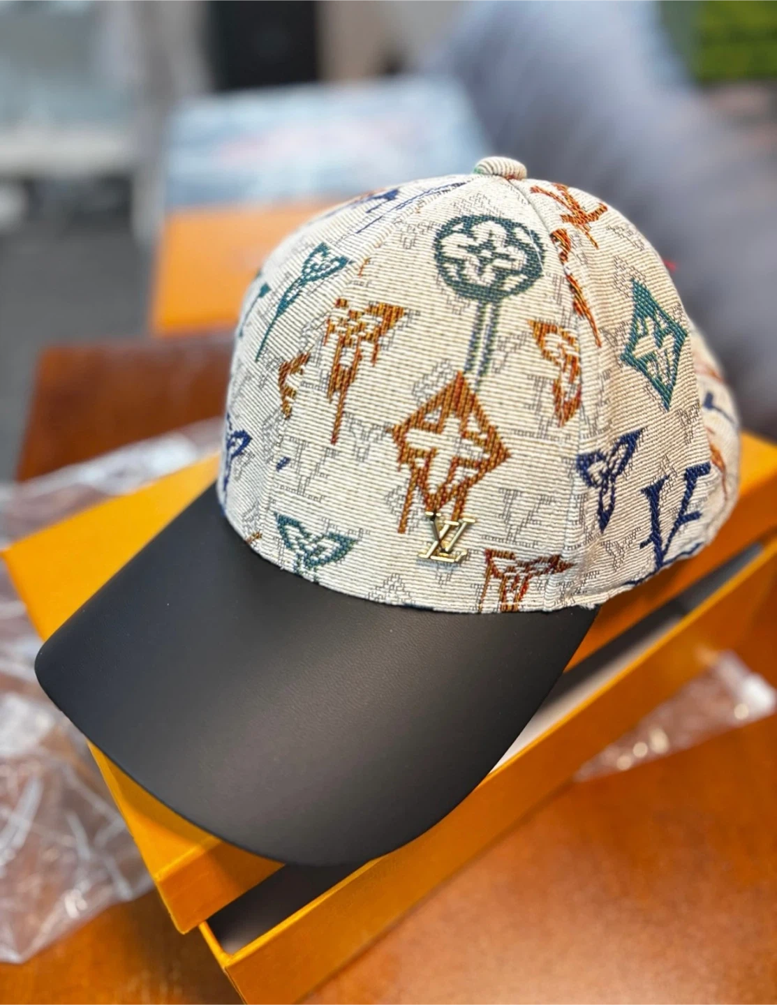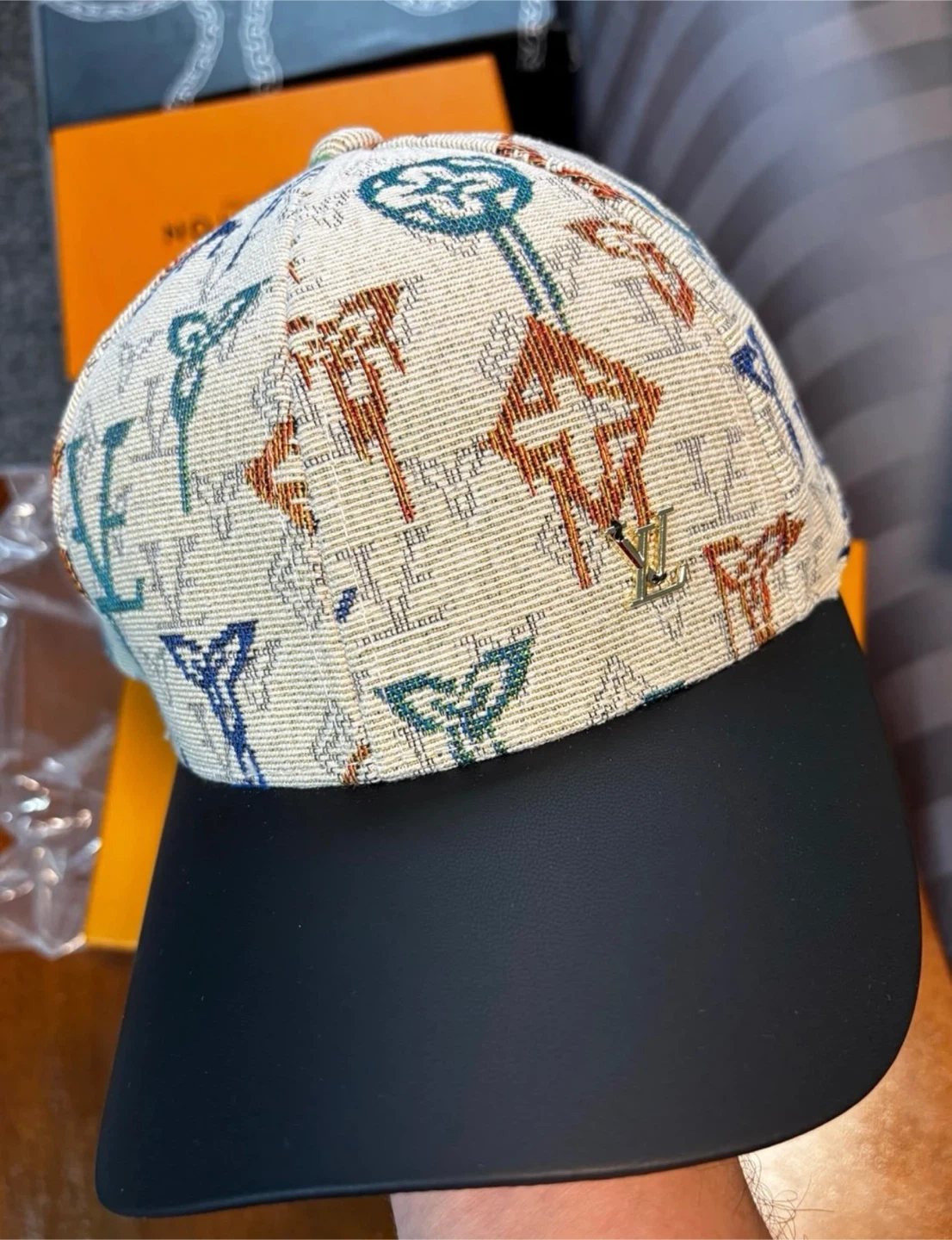 Selling a stylish LV cap! It features a unique pattern and the iconic. Perfect for adding a touch of luxury to your everyday look