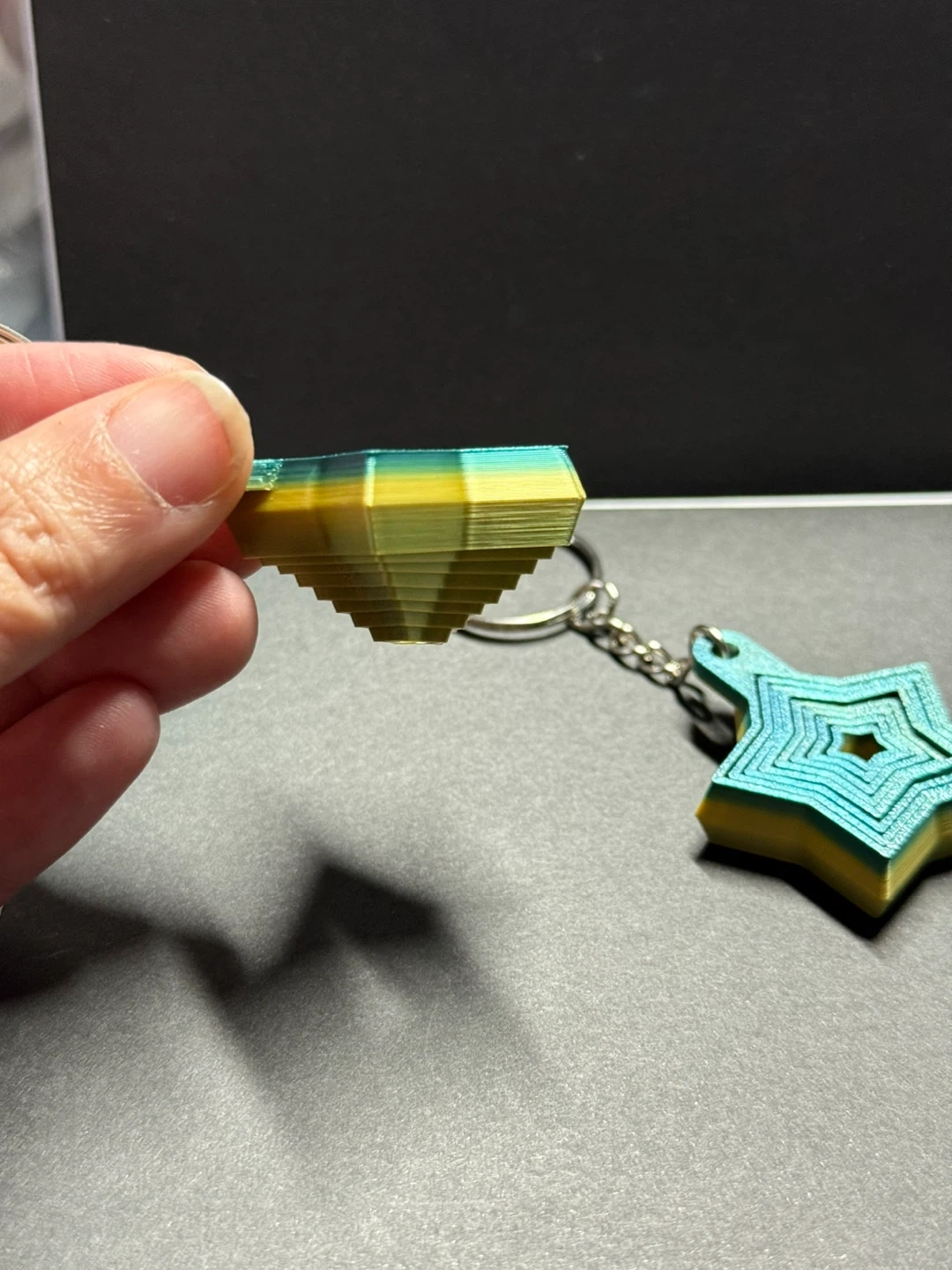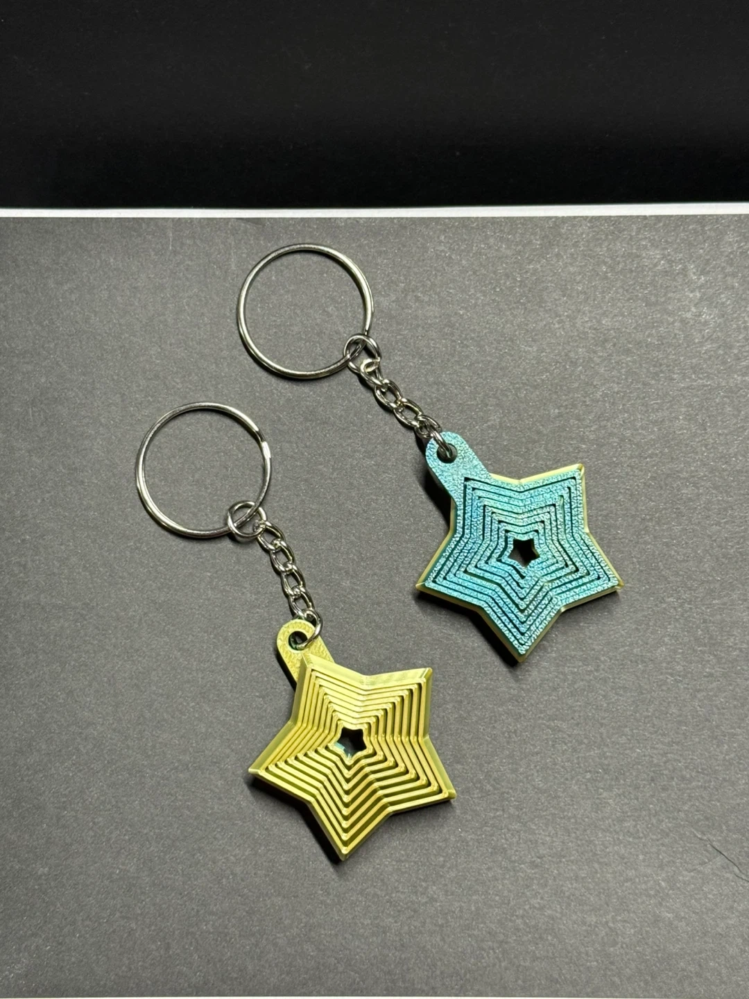 Selling these unique 3D printed star keychains! They're lightweight and have a cool layered design in blue and yellow. Great for adding a bit of flair to your keys or backpack