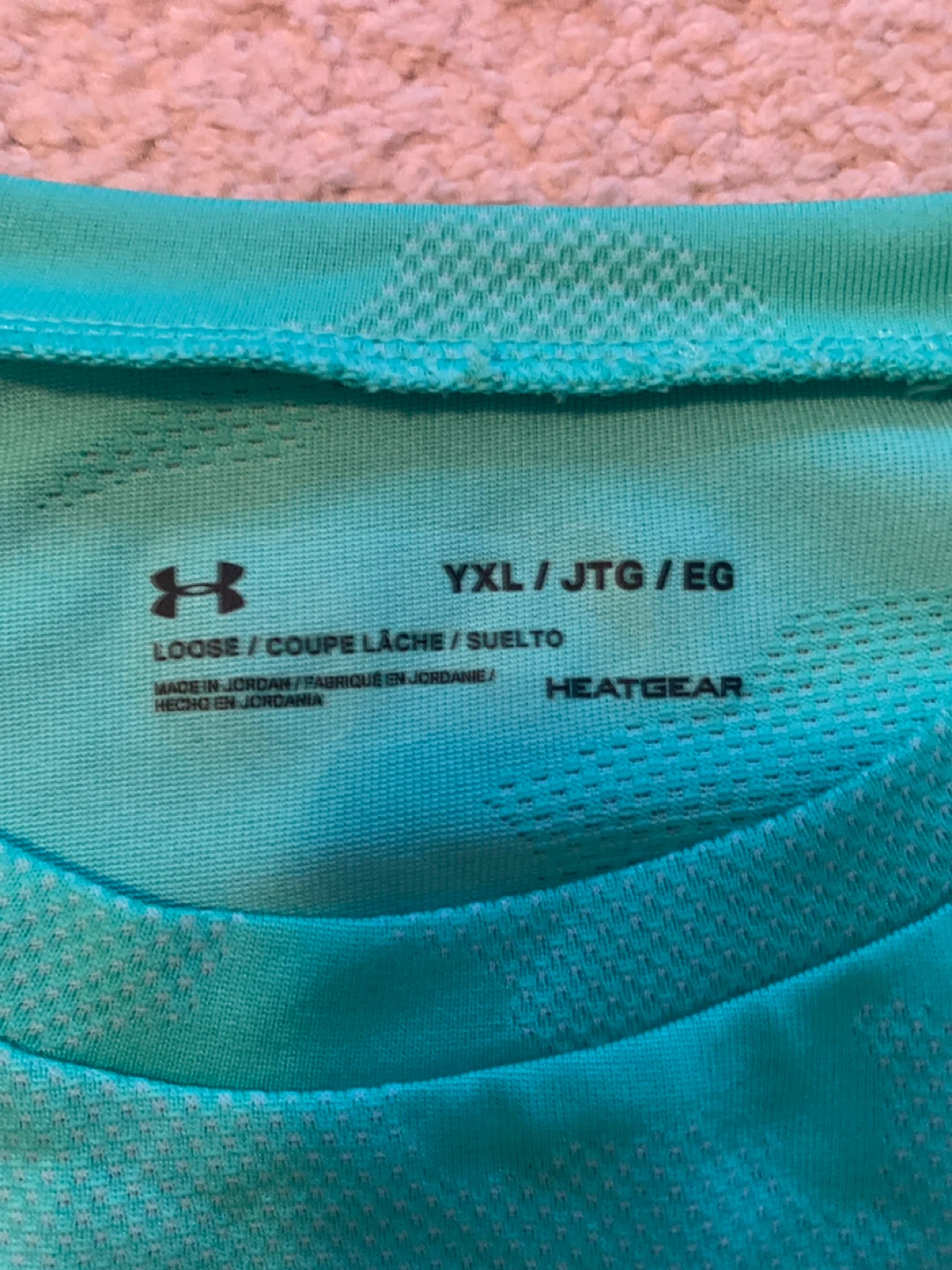 Selling an Under Armour HeatGear t-shirt in size YXL. The shirt is a light turquoise colour and is in great condition. It's a loose fit and perfect for sports or casual wear!