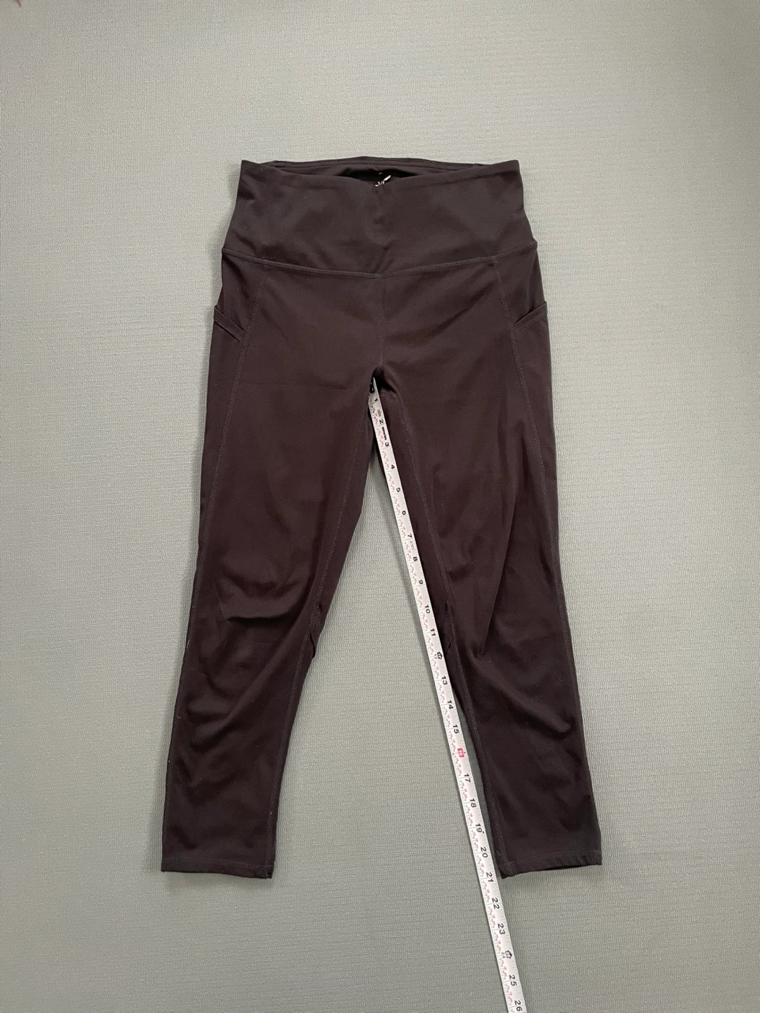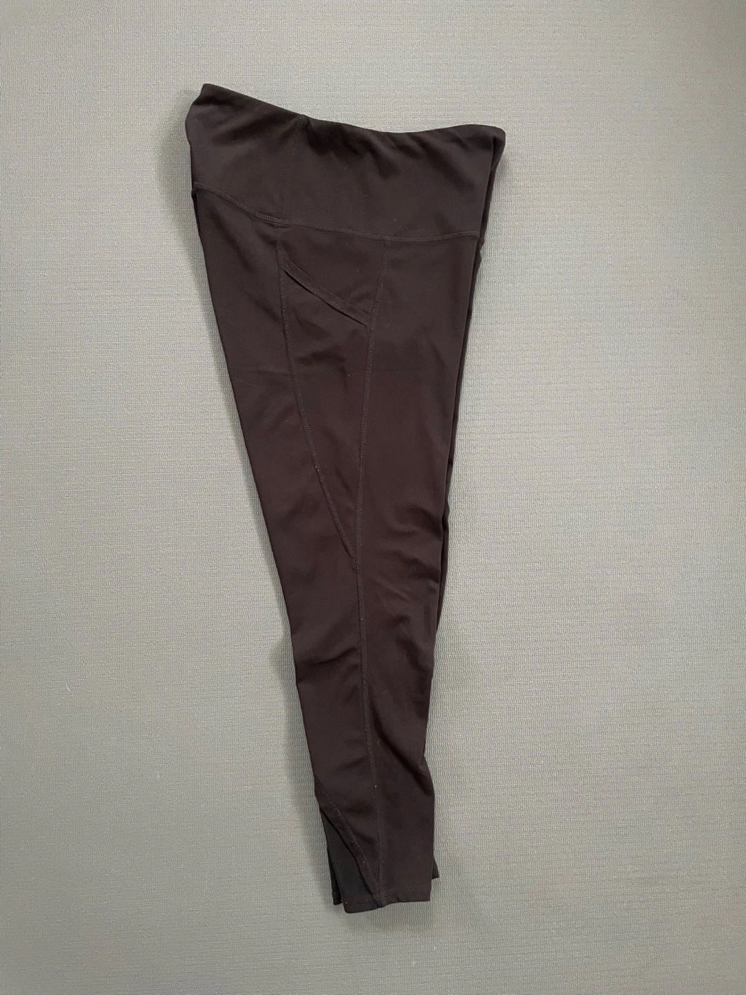 Athleta black crop leggings in size M. These leggings have pockets and a stylish split hem. They are in great condition and ready for your next workout or casual outing