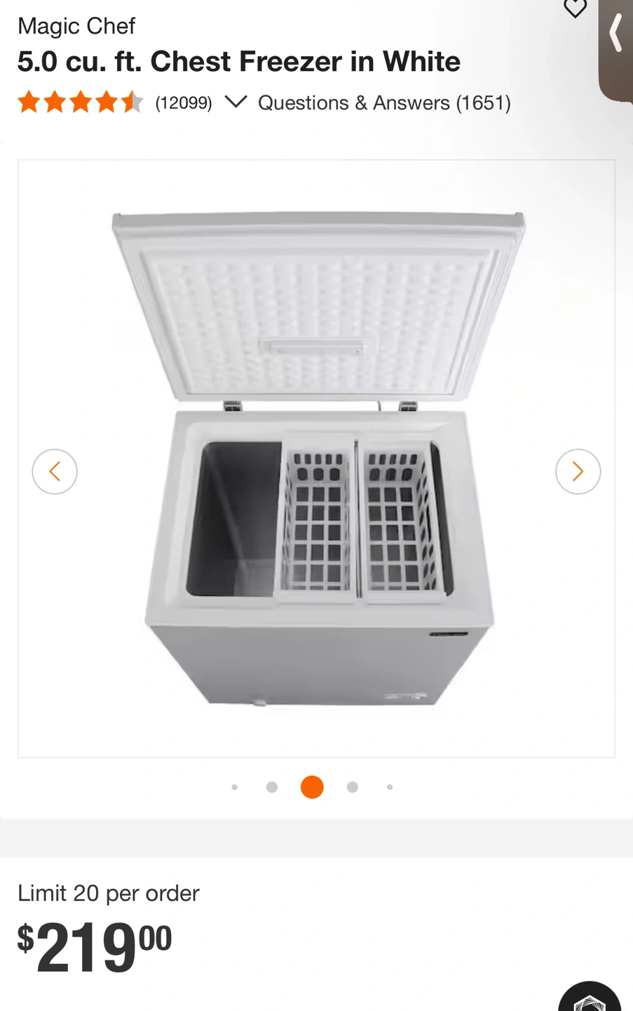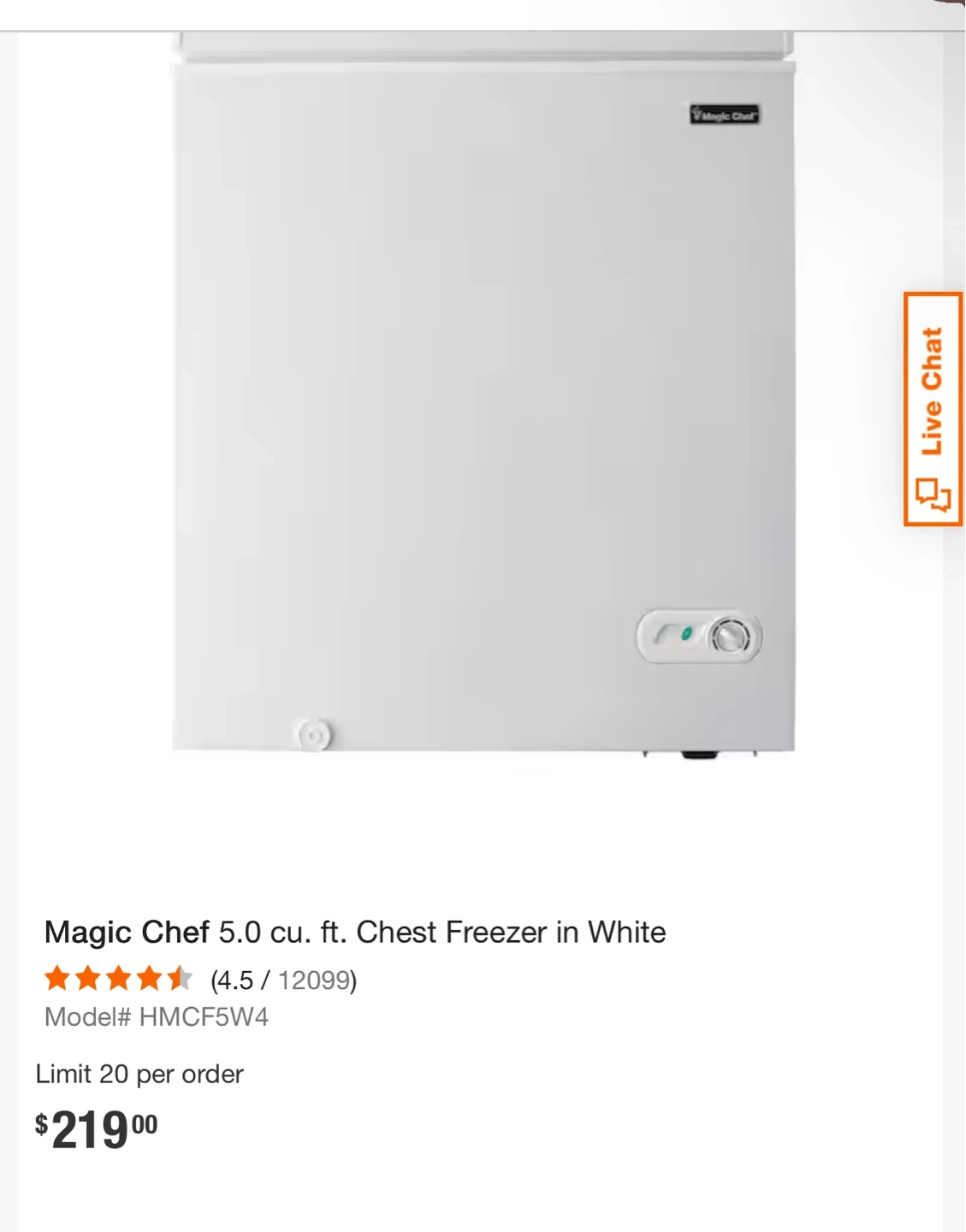 Selling a Magic Chef 5.0 cu. ft. chest freezer in white. It's in great condition and ready to keep your food frozen. Originally bought for $219