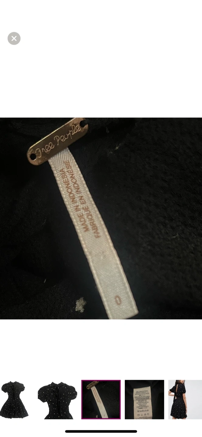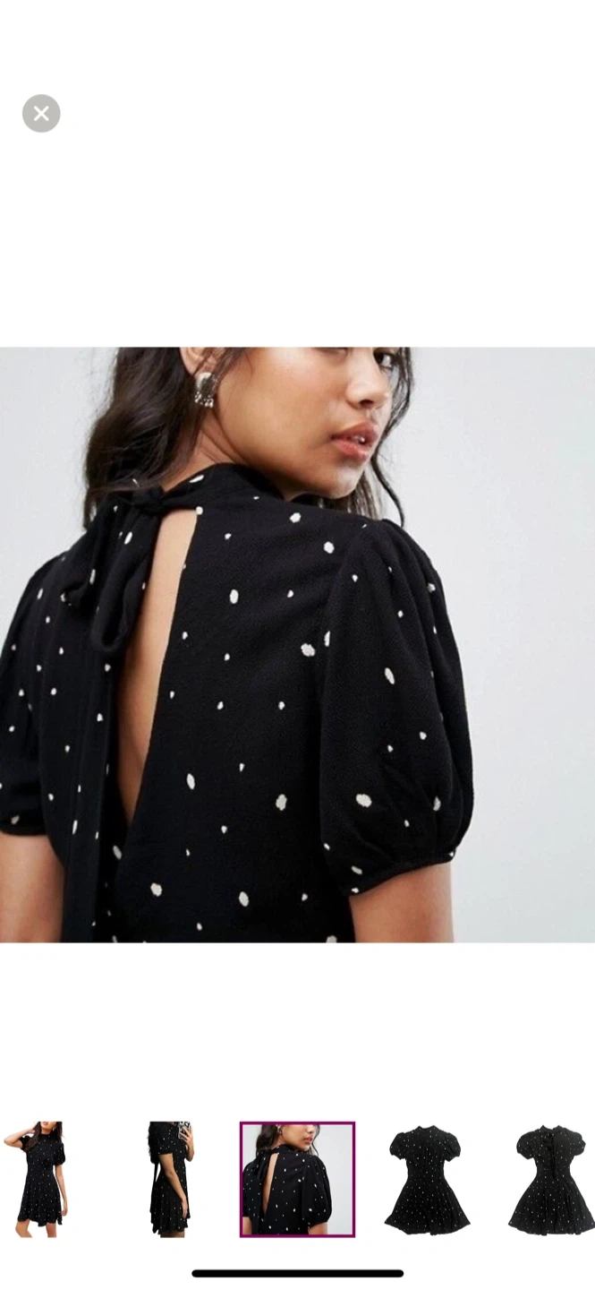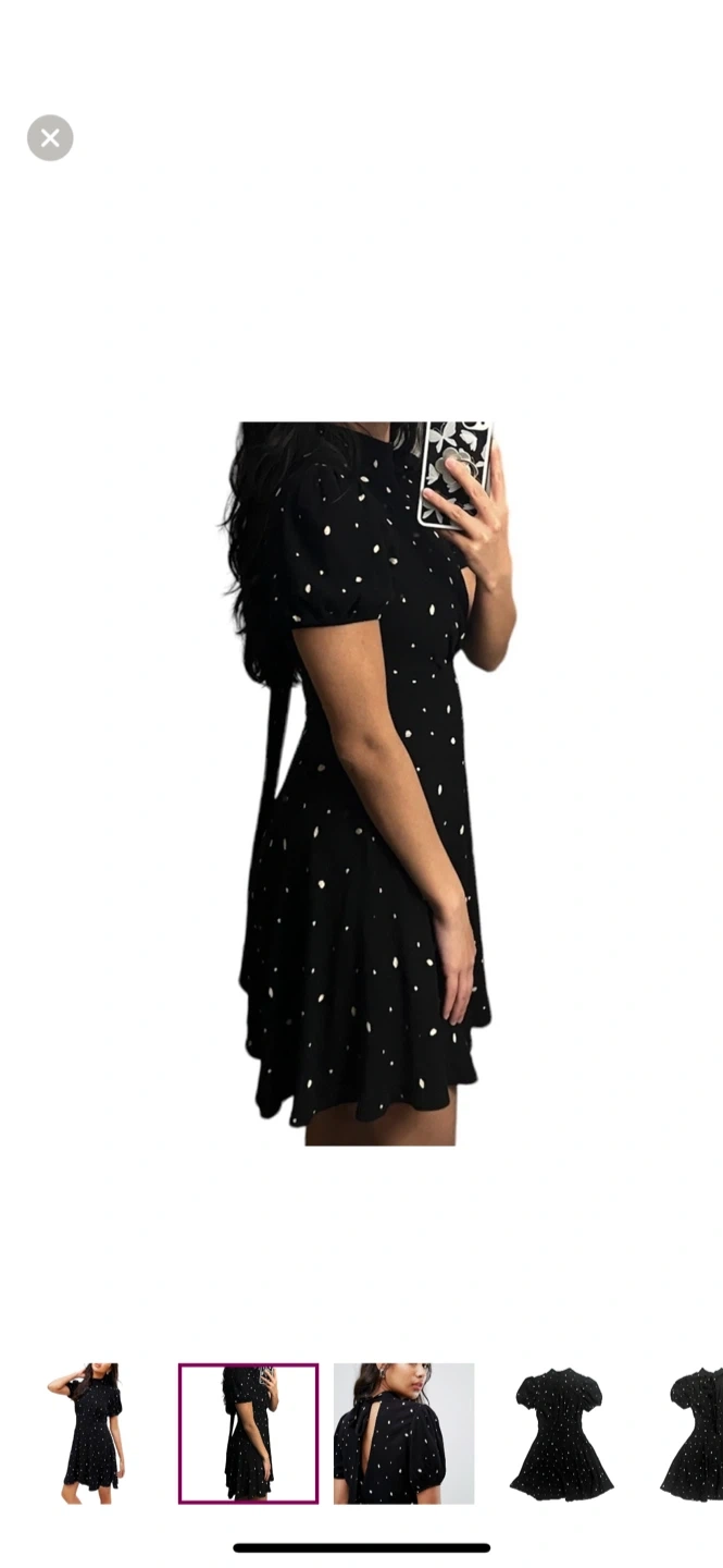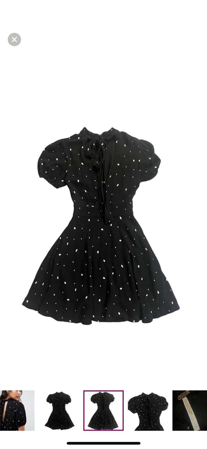 Cute free people mini dress with a black background and white polka dots! Features short sleeves and an open back with tie closure. Perfect for a night out or a casual day.
