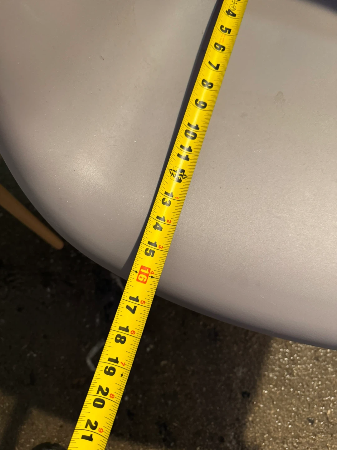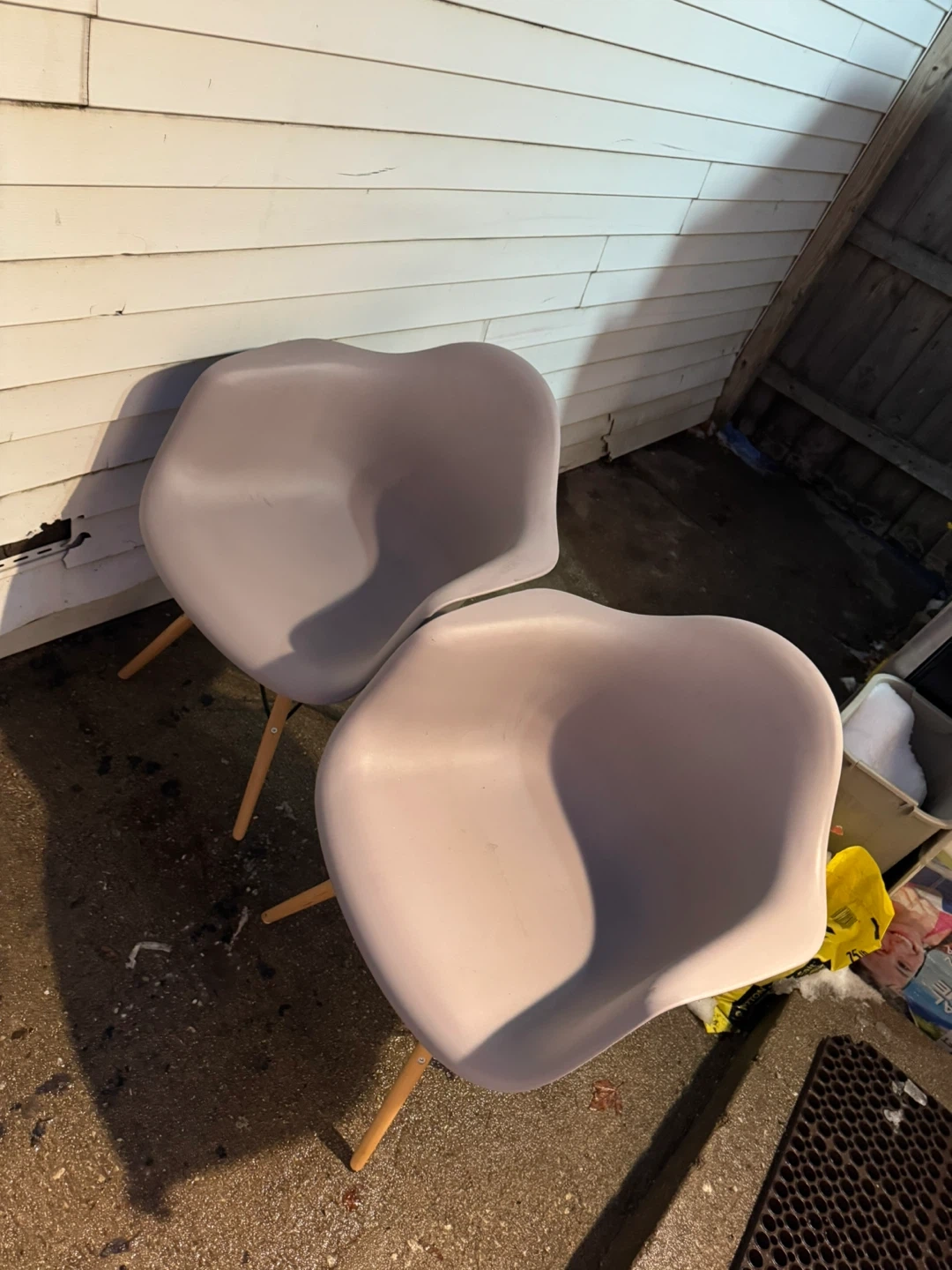 Selling a set of two modern dining chairs. They're gray and feature wooden legs. The seat is approximately 21 inches wide and 16 inches deep. The height of the chair is about 33 inches.