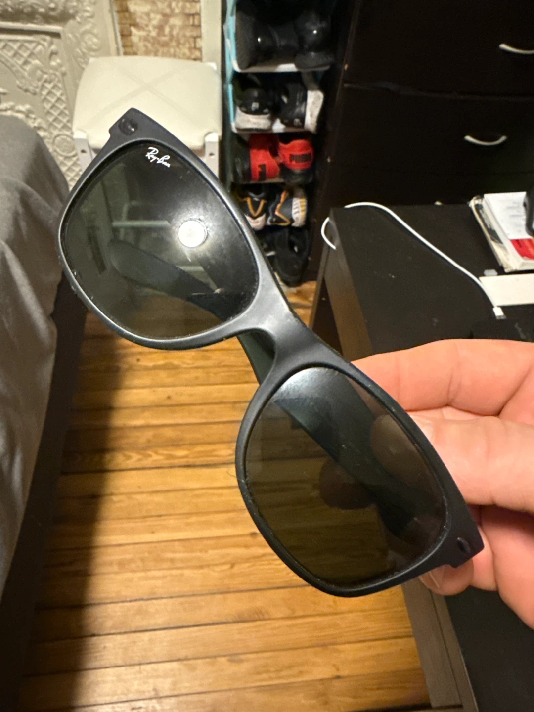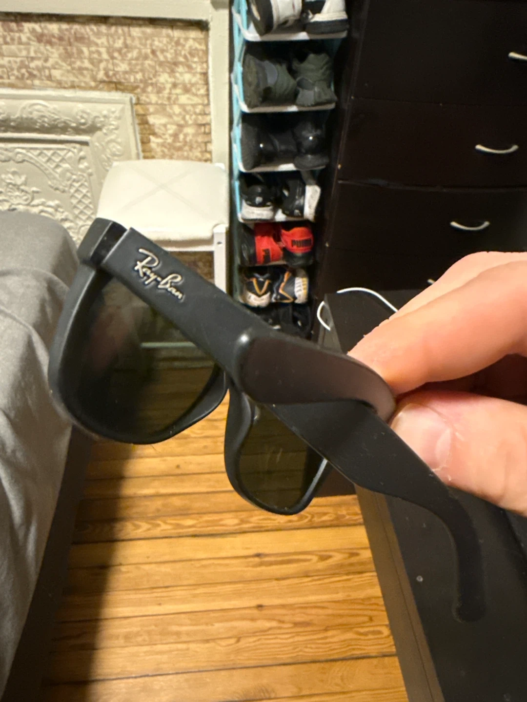 Selling a pair of Ray-Ban sunglasses. They are in good condition and have a classic look. Perfect for sunny days!