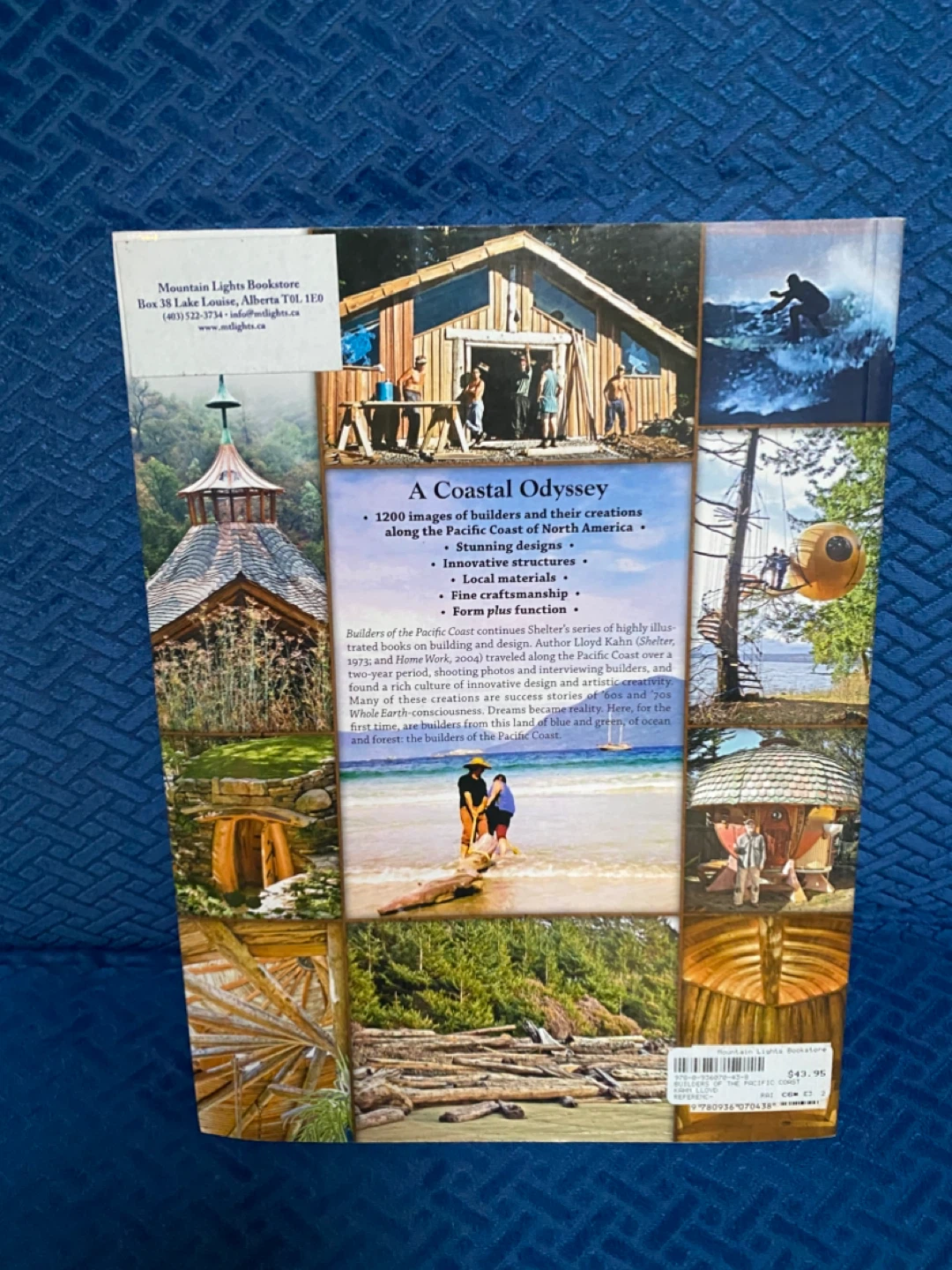 Selling a copy of "Builders of the Pacific Coast" by Lloyd Kahn! It showcases 1200 images of builders and their creations along the Pacific Coast of North America. It features innovative structures, local materials, and fine craftsmanship