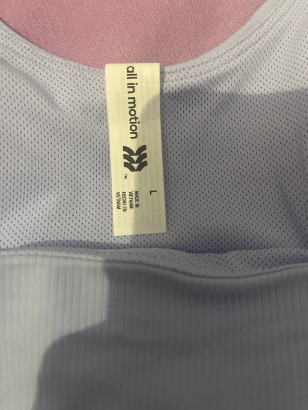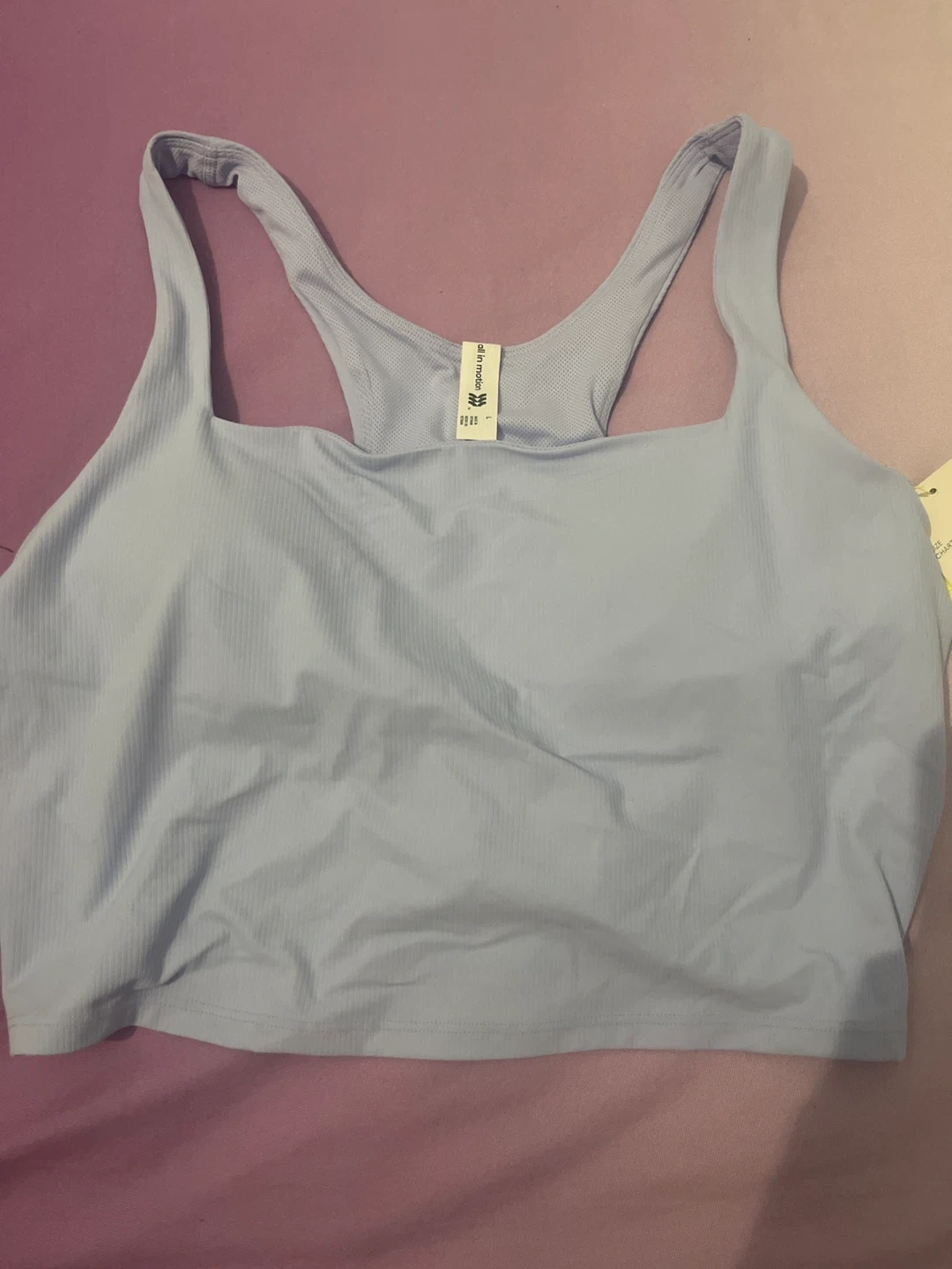 Selling a light blue sports bra from All in Motion in size L. It's in great condition and ready for a new workout partner!
