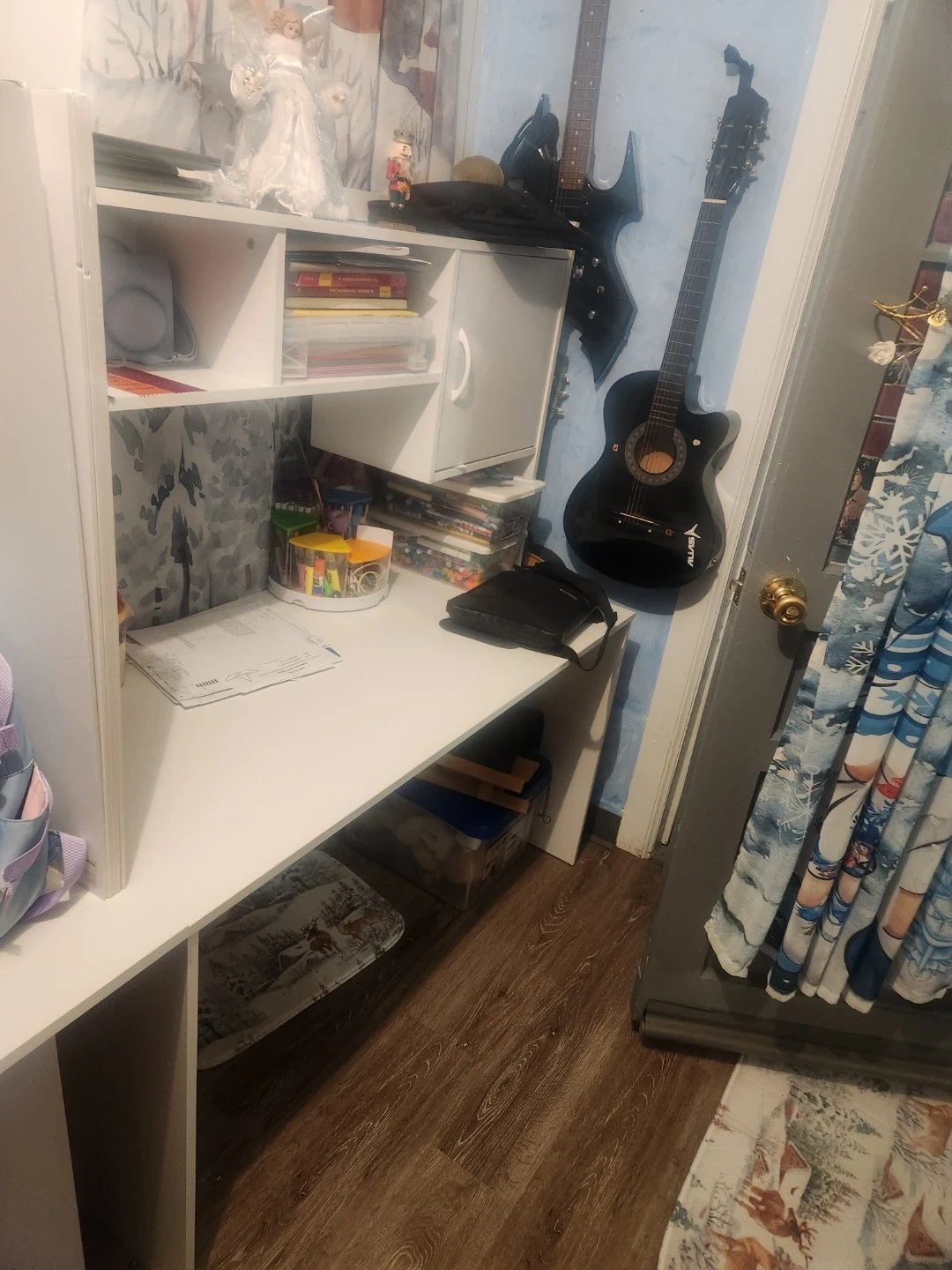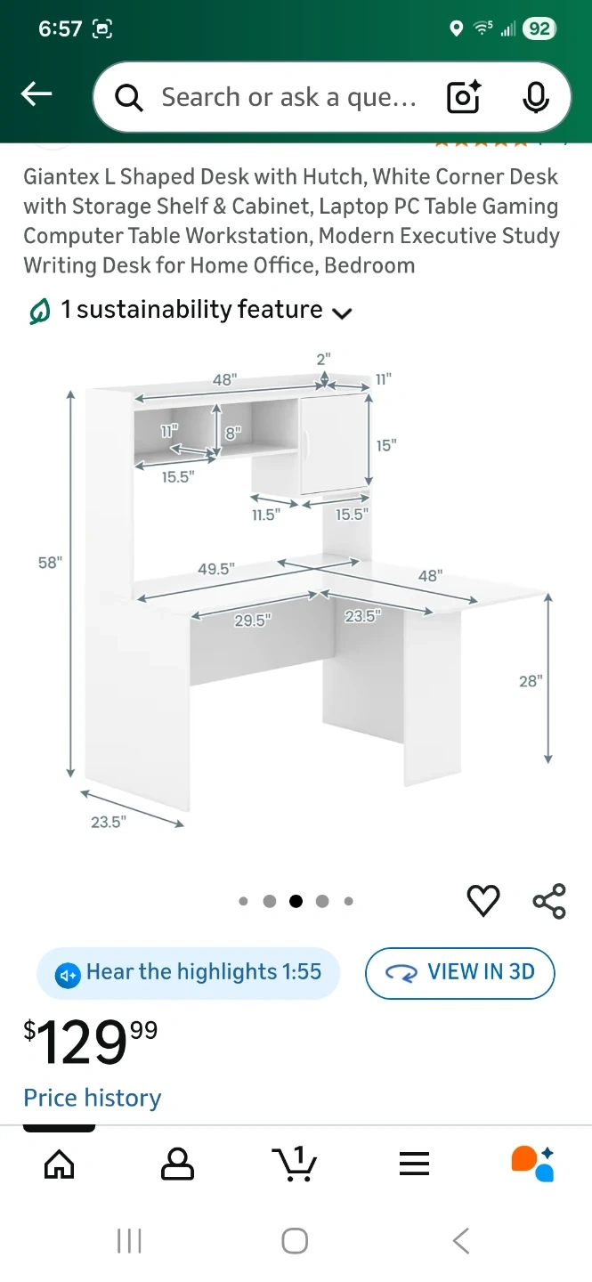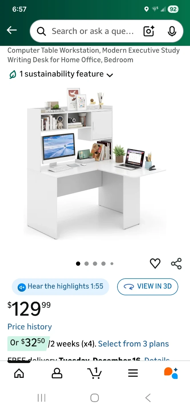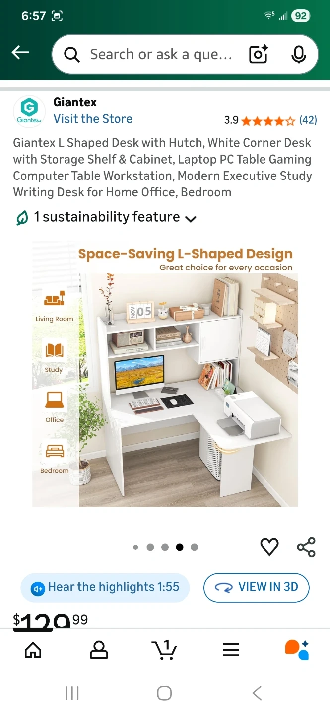 Selling a Giantex L-shaped desk in white with a hutch. It's a great space-saving design for any room! The desk includes a storage shelf and cabinet. It's perfect as a computer table, workstation, or study desk. Originally bought for $129.99