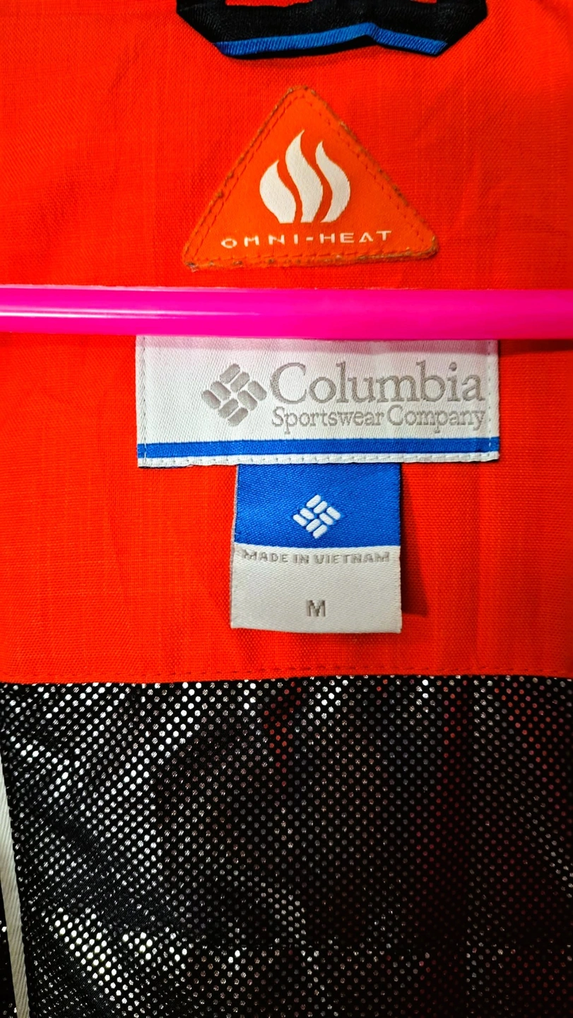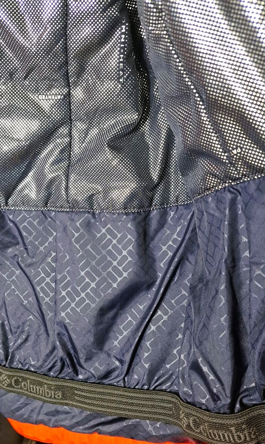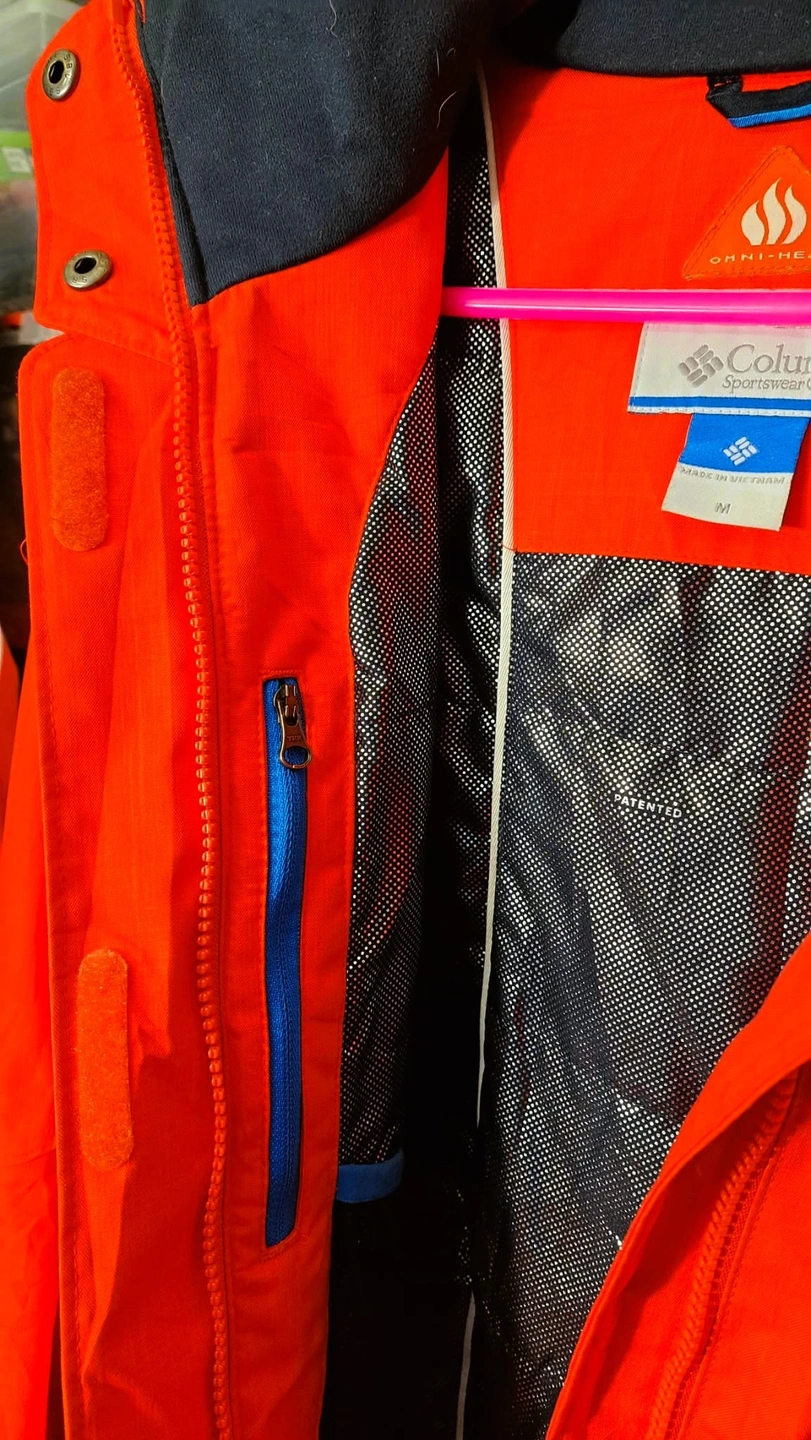 This beautiful waterproof/breathable jacket in red hibiscus or deep blush featuring Omni-Heat reflective for extra warmth is designed as an interchange system. The inner lining can be zipped out and worn separately. It features a hood, zippered hand pockets, and underarm venting, typical for a ski jacket. It has embroidered Columbia Logo. It has removable, adjustable storm hood faux fur. It is 100% polyester Matte Melange which offers a blend of practical performance characteristics and a sophisticated, textured appearance. It looks like New. Only worn once but with very minimal sign of wear on the lower part of sleeves and not so visible tiny hole [please check photos]