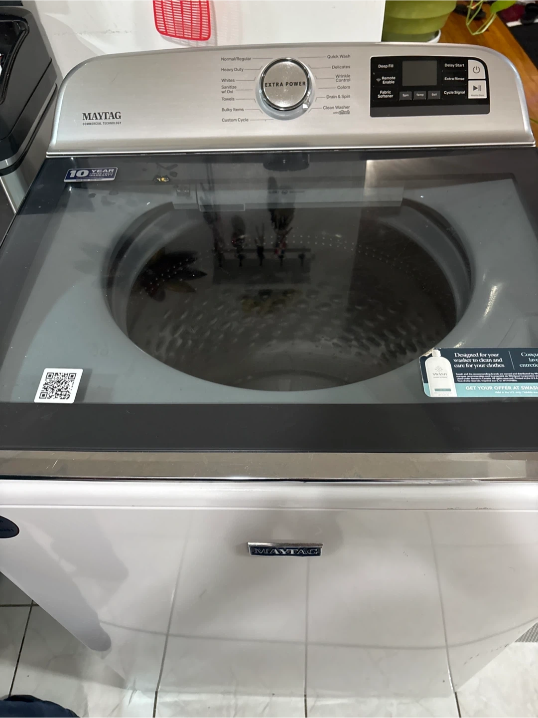 Selling a Maytag washing machine with commercial technology! It has several wash cycles including: Normal/Regular, Heavy Duty, Whites, Sanitize with Oxi, Towels, Bulky Items, and Custom Cycle. It also has Quick Wash, Delicates, Wrinkle Control, and Colors options! It also features Extra Power, Deep Fill, Delay Start, Remote Enable, Extra Rinse, Drain & Spin, and Clean Washer options