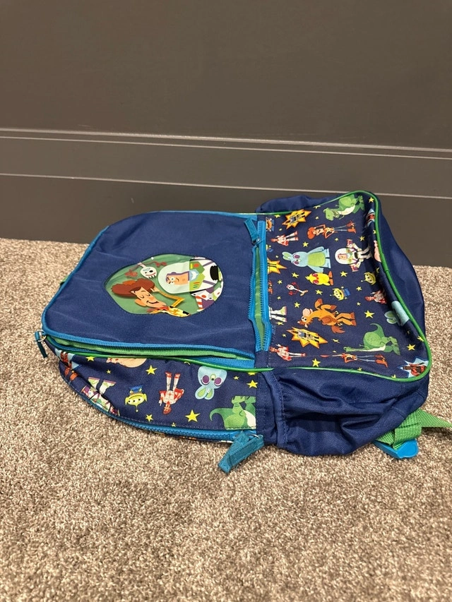 Get ready for adventures with this delightful Toy Story backpack! This backpack is in excellent condition, ready to accompany your little one on exciting journeys to school or playdates. Featuring beloved characters like Woody, Buzz Lightyear, and the gang, it's sure to bring smiles and joy to any Toy Story fan. Features: * Vibrant Toy Story character design * Spacious main compartment * Front accessory pocket * Adjustable padded shoulder straps