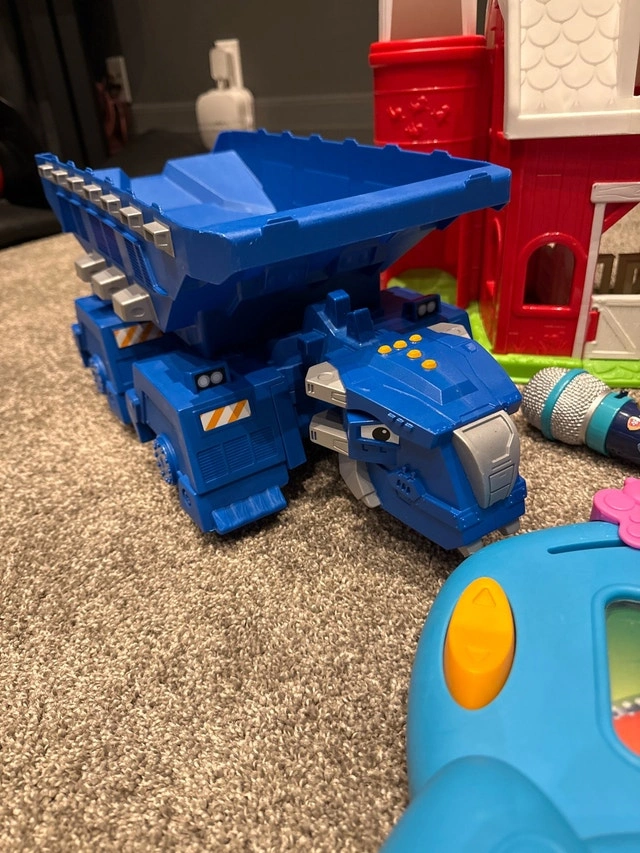 This used bundle of kids' toys includes a variety of engaging and educational items perfect for toddlers and young children. Included are a VTech drop and go dump truck, a Matchbox crane, a Fisher-Price farm, a Fisher-Price microphone, and a LeapFrog Ice Cream Cart. All toys are in good, used condition with some signs of play. These toys are great for developing motor skills, encouraging imaginative play, and providing hours of fun. All for $5 !!