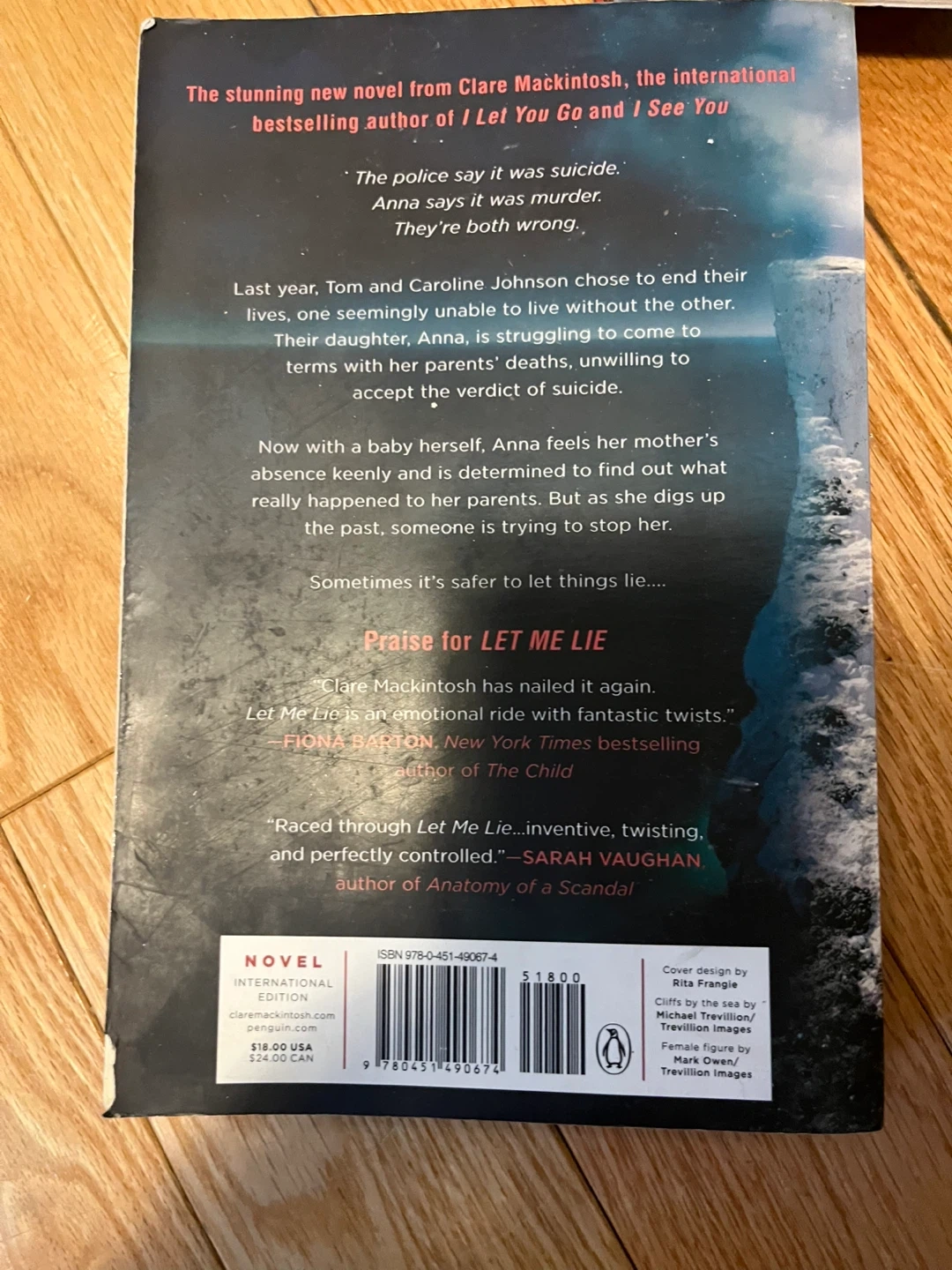 Selling the novel 'Let Me Lie' by Clare Mackintosh. It's a great read! Perfect for anyone who enjoys a good mystery or thriller novel.