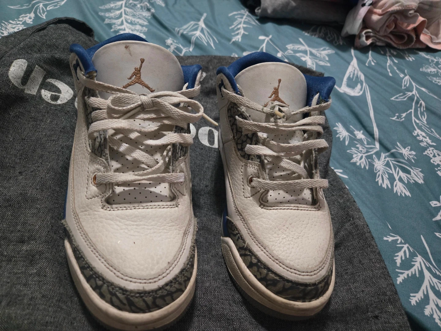 Buy & SellAir Jordan 3 Retro White/BlueAir Jordan 3 Retro White/Blue$17Selling a pair of Air Jordan 3 Retro sneakers in a white and blue colorway. They show some signs of wear but still have a lot of life left!ConditionGoodSize1.5 yBrandAir JordanWHERE TO MEET161 broadwayView MapSELLERverifiedRosarioWashington Heights600 reviews0 chats·0 favorites·80 viewsSEND CHAT TO SELLERHi Rosario! I’m interested in your listing.Hi Rosario! I’m interested in your listing.Get the Karrot app to chatSign In to chat