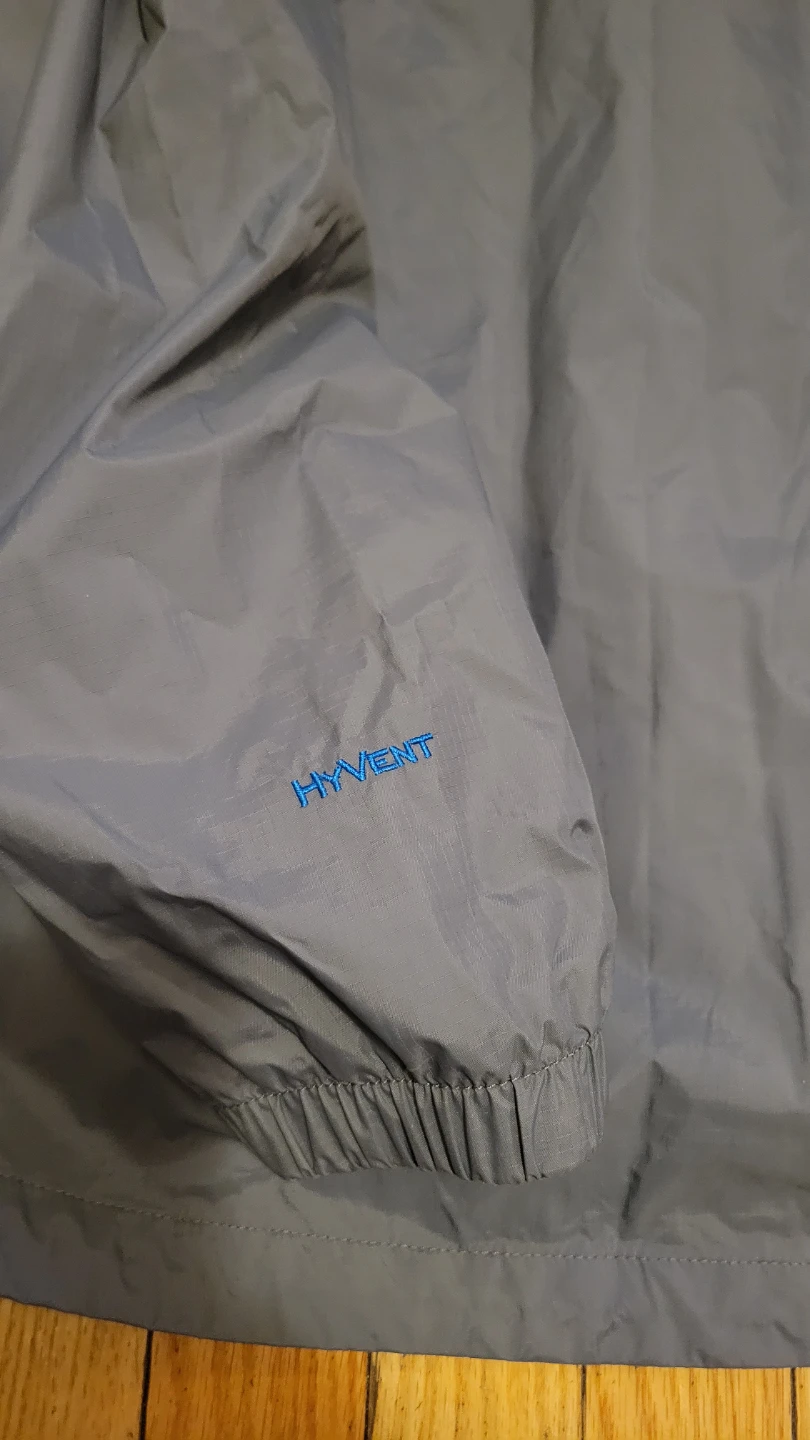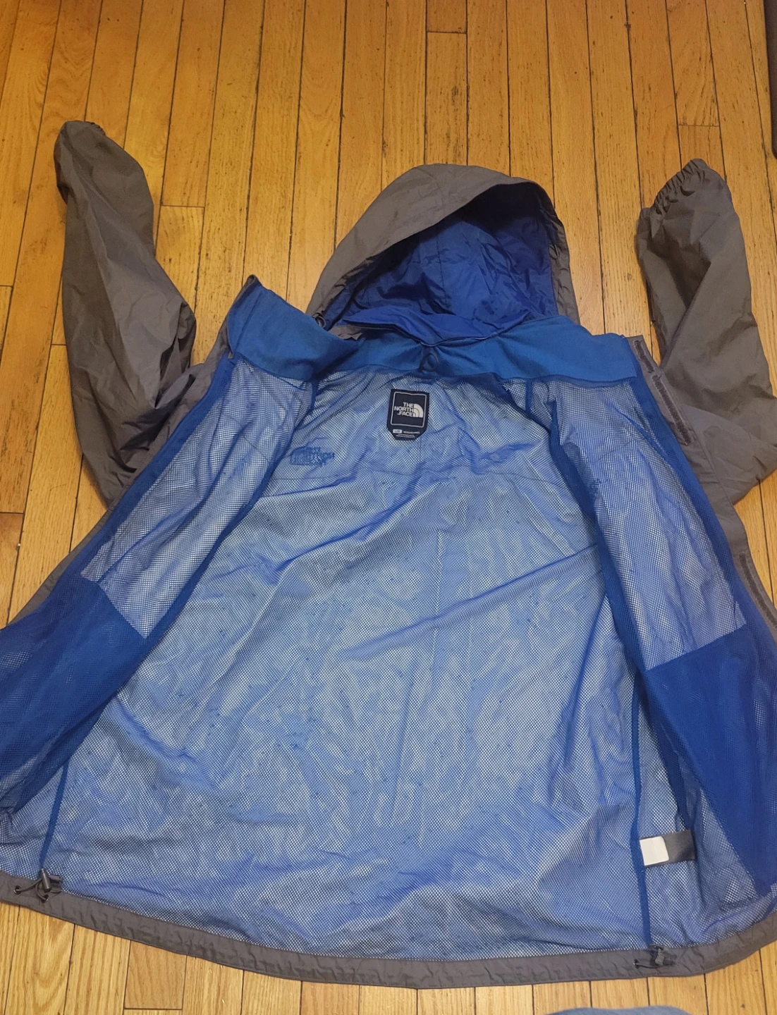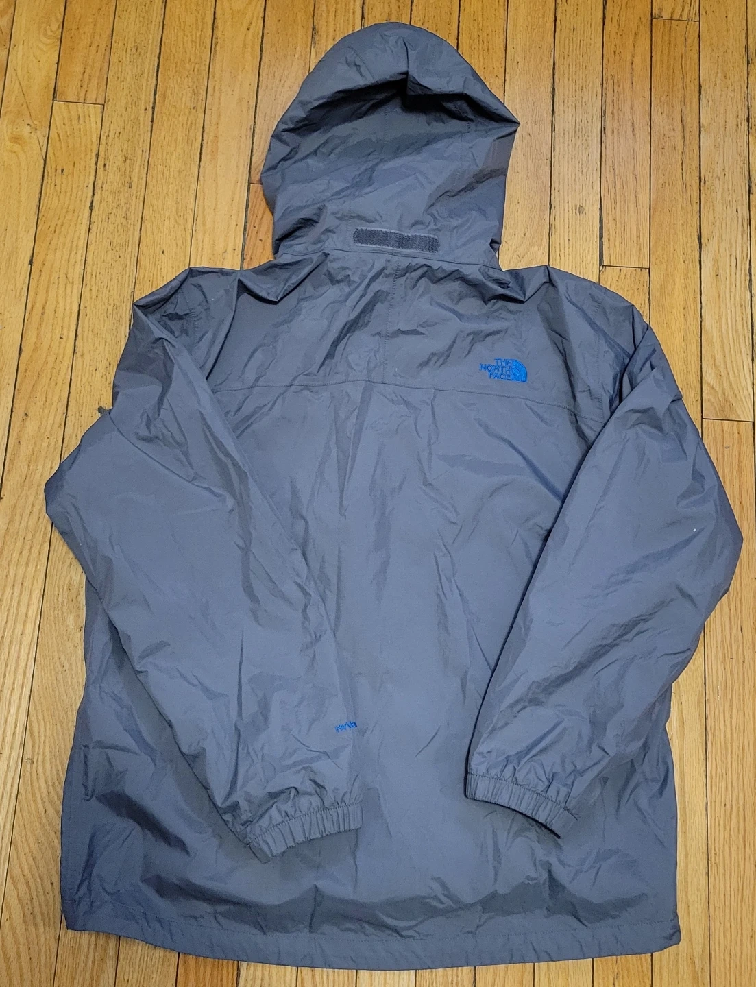 Selling a gray rain jacket from The North Face! It's a size L and in great condition. Perfect for staying dry on those rainy days!