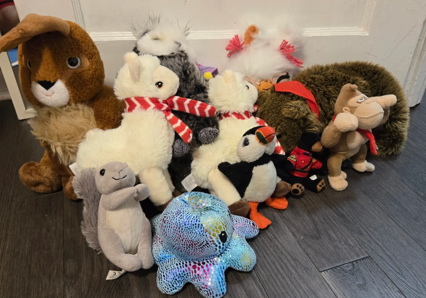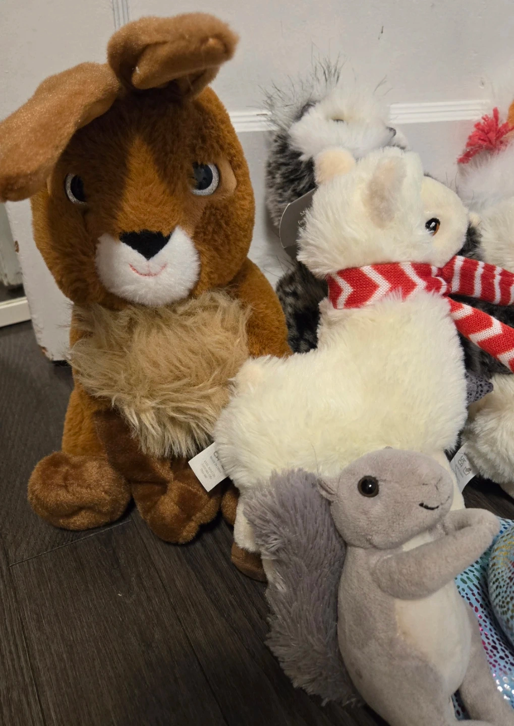 Selling a collection of various plush stuffed animals. There's a variety of different animals in the lot! These have been loved for years, now ready to pass them on for more love.