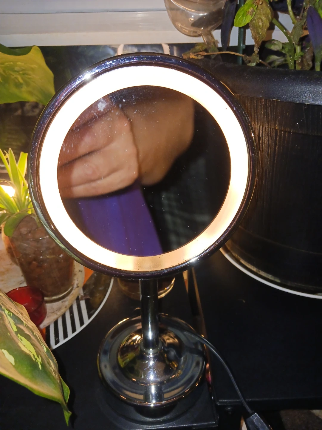 Selling a lighted vanity makeup mirror. It's in great condition and perfect for applying makeup or skincare! The light provides excellent visibility, and the mirror is the perfect size for any vanity or countertop