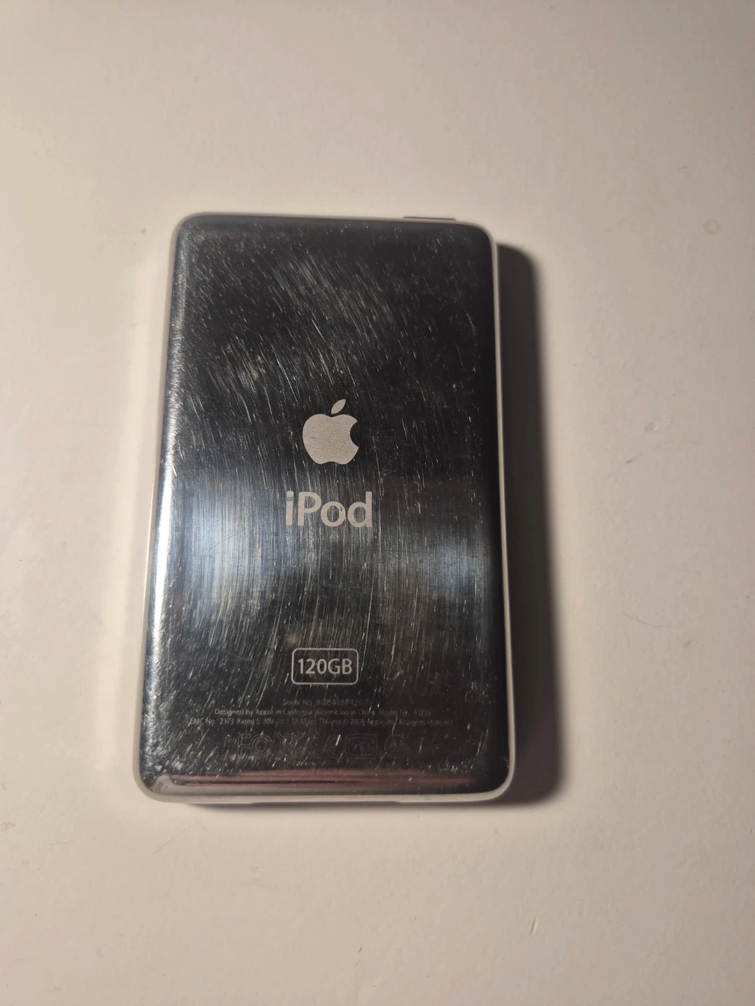 Selling my Apple iPod Classic with 120GB of storage! It's in great condition and perfect for anyone who loves to carry their music library with them. There are some scratches on the back, but the screen is in great shape. Get ready to enjoy all your favorite tunes on this classic device!