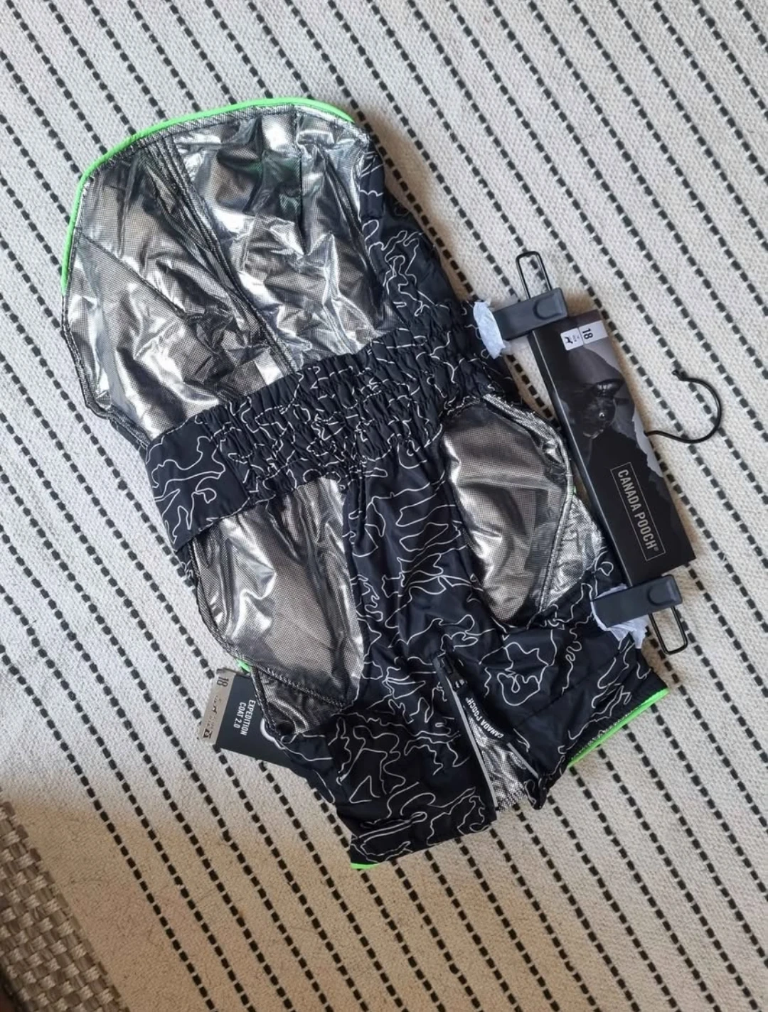 Keep your furry friend warm and stylish with this Canada Pooch Expedition puffer! It's a size 18 and designed to keep your dog cozy during outdoor adventures. The puffer features a sleek black and white design with neon green trim. Perfect for those chilly walks! 18" (45cm) 25 - 33lb (11 - 15kg)