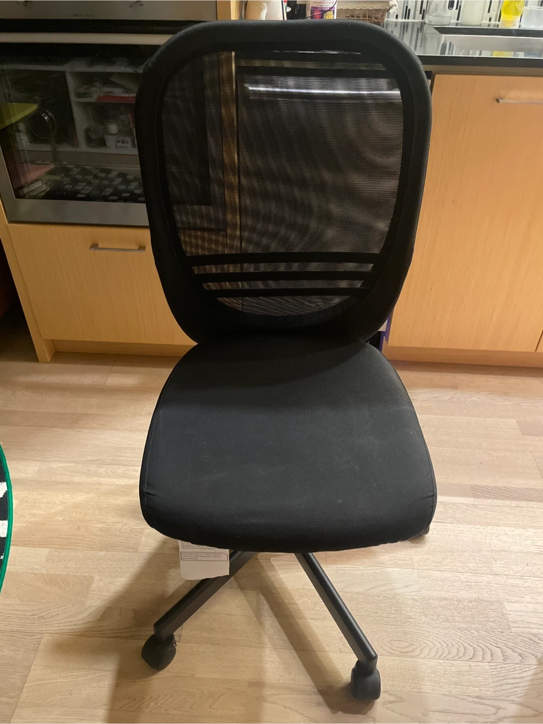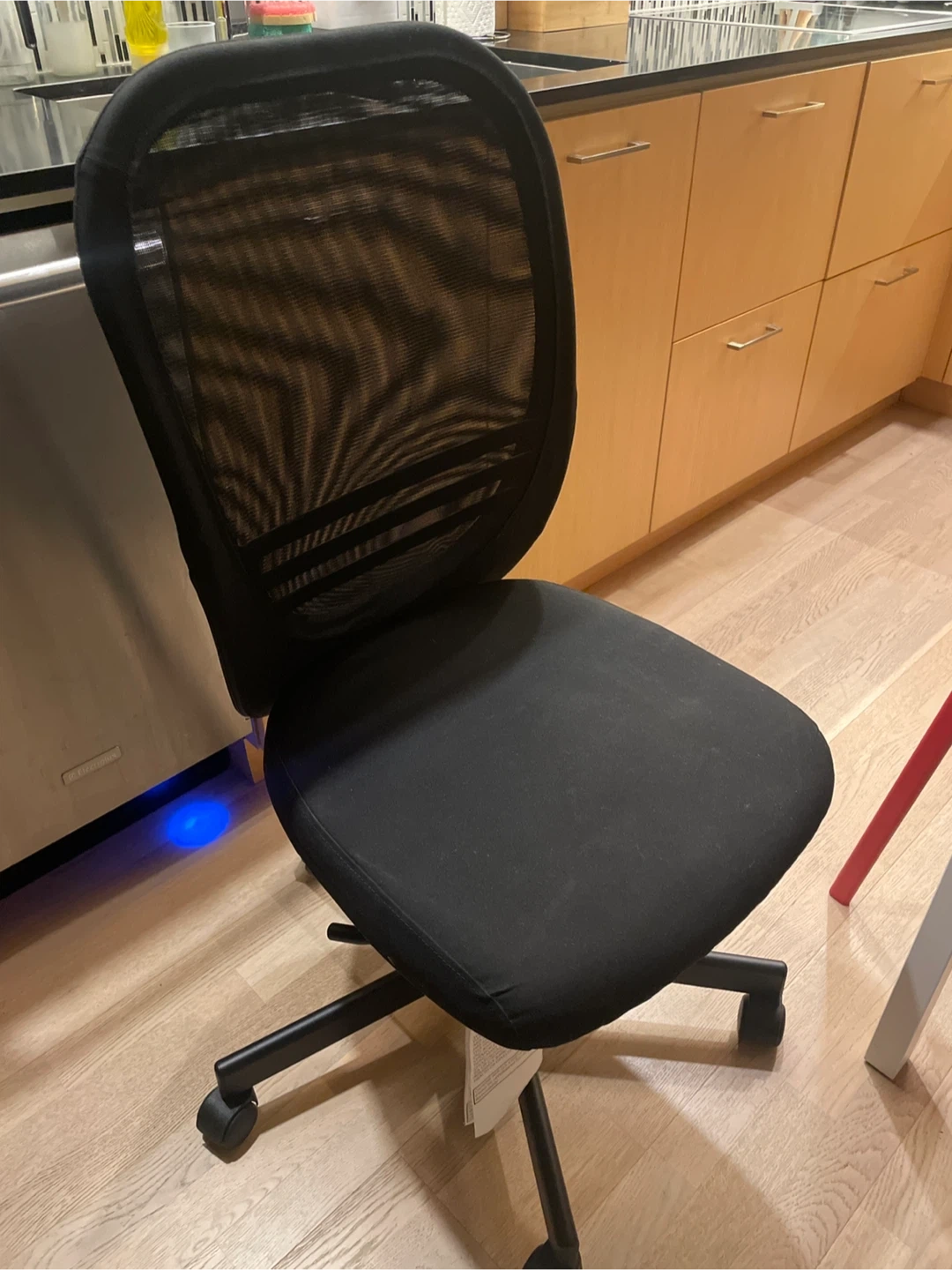 Selling a comfortable IKEA black mesh office chair. It's in great shape and ready to use for your home office or study space! It has a padded seat and adjustable height, ensuring a comfortable fit for you.