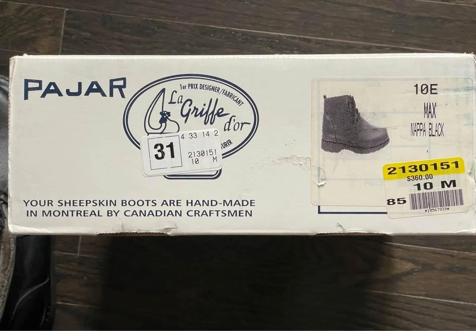 Pajar brand new leather boots, made in canada size 10, sheepskin hand-made in Montreal Canada