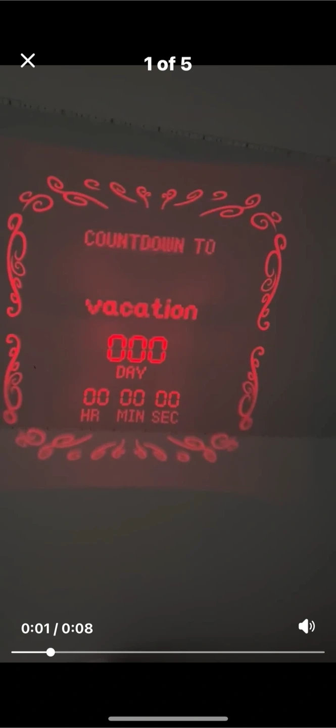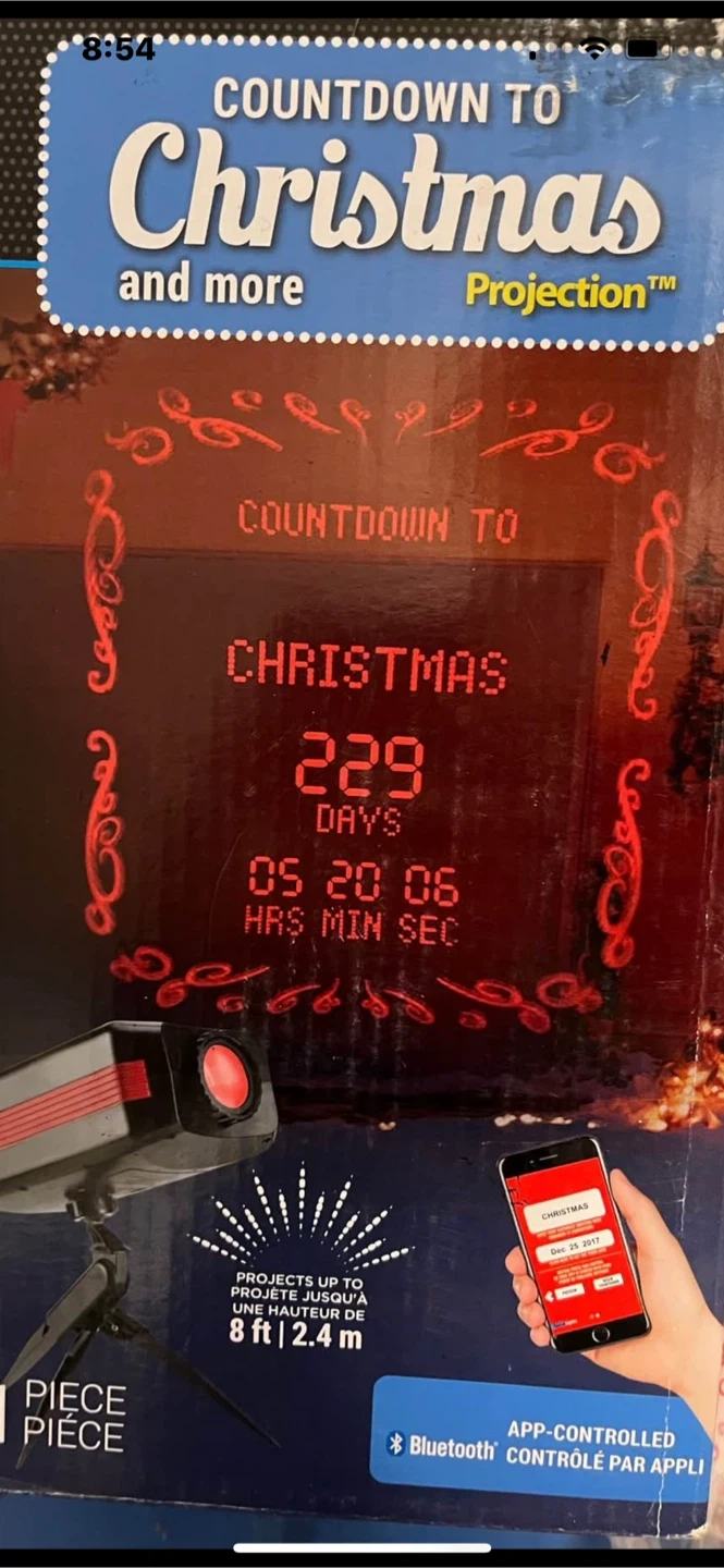 Countdown to birthday, wedding or vacation, you input your event on the app. Counts down from up to 999 days. Use close up or up to 8 ft. Use the focus dial depending on distance. Use it on the kids ceiling so they stop asking when Santa is coming!!! Perfect for indoor and outdoor use, with a stake for outdoor use and a built-in tripod for indoor use
