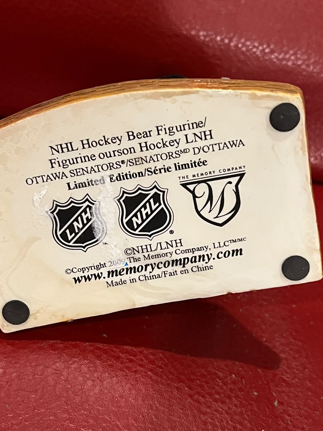 Selling a cute NHL Hockey Bear Figurine of the Ottawa Senators! It's a limited edition piece from The Memory Company. Perfect for any hockey fan's collection