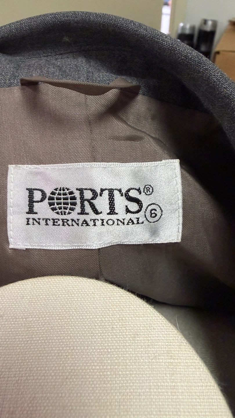 Selling a stylish gray blazer from PORTS INTERNATIONAL. It's a size 6, fits US size Small-Medium, and made of 98% wool and 2% lycra for a comfortable fit. The lining is 100% acetate. Perfect for adding a touch of sophistication to any outfit!
