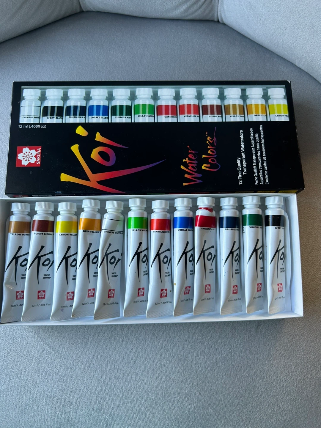Selling a Sakura Koi Water Colors set! This is a set of 12 fine quality transparent watercolors. The set includes a variety of colours to get you started on your next art project. Some colours used just to check. Other tubes untouched.