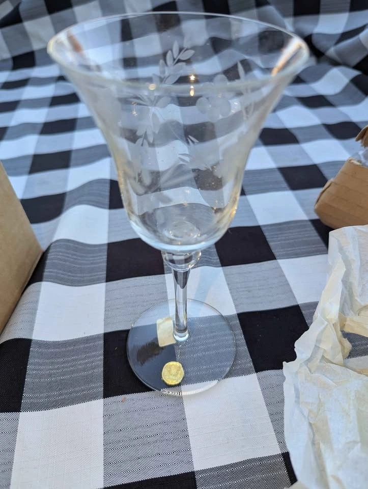 Buy & SellNew Vintage Crystal etched wine glassesNew Vintage Crystal etched wine glasses$65Beautiful new vintage etched Crystal wine glasses made in Romania. Glasses still have makers mark sticker on them.WHERE TO MEETCheck LocationView MapSELLERLadderPalos Hills150 reviews0 chats·0 favorites·3 viewsSEND CHAT TO SELLERHi Ladder! I’m interested in your listing.Hi Ladder! I’m interested in your listing.Get the Karrot app to chatSign In to chat