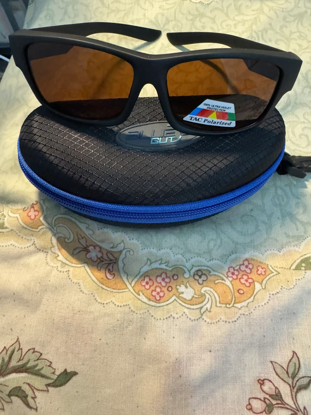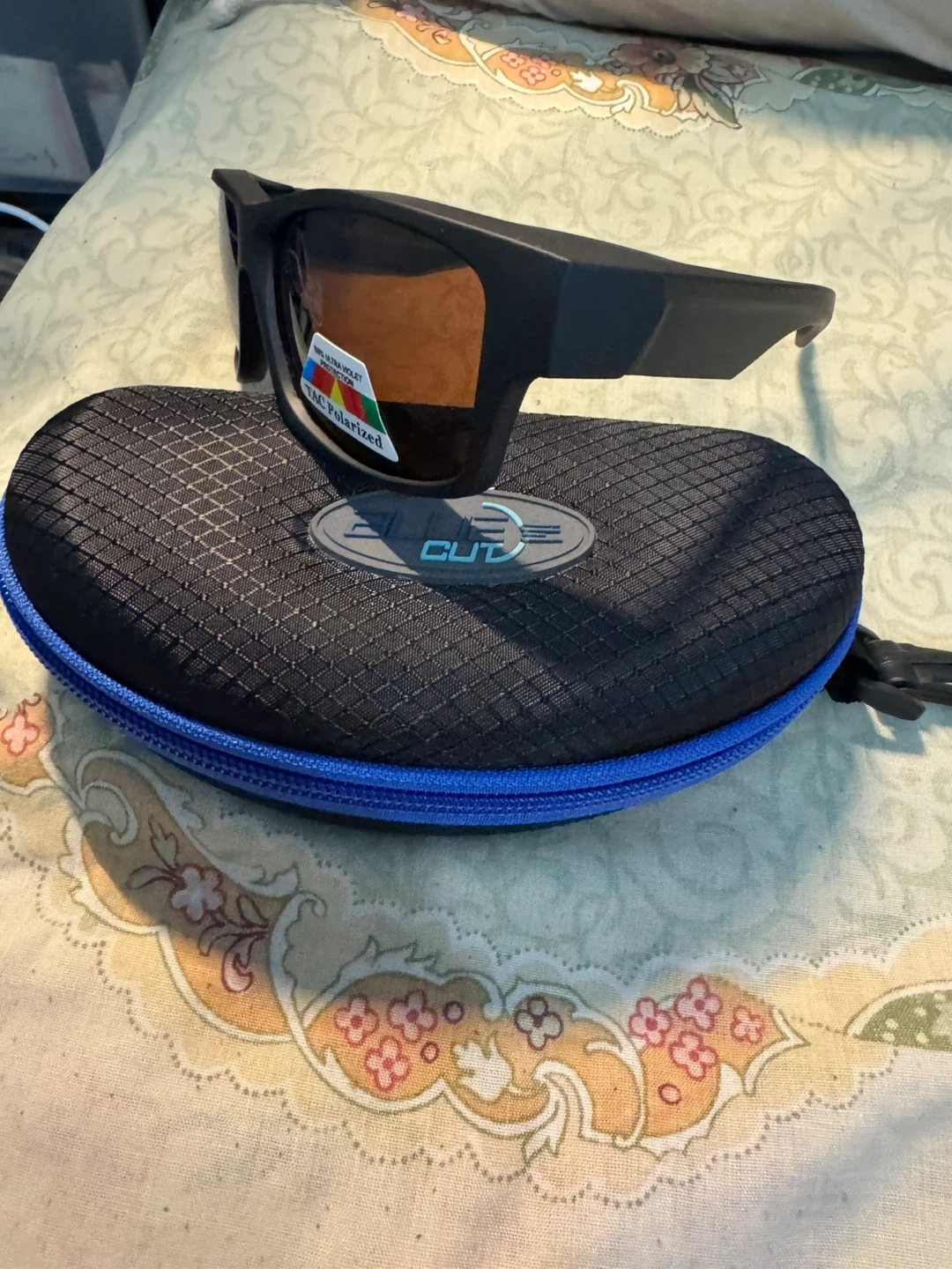 Selling a pair of Blue Cut sunglasses. They come with a case for protection. The lenses are polarized, which is great for reducing glare. They're in good condition and ready for a new owner!