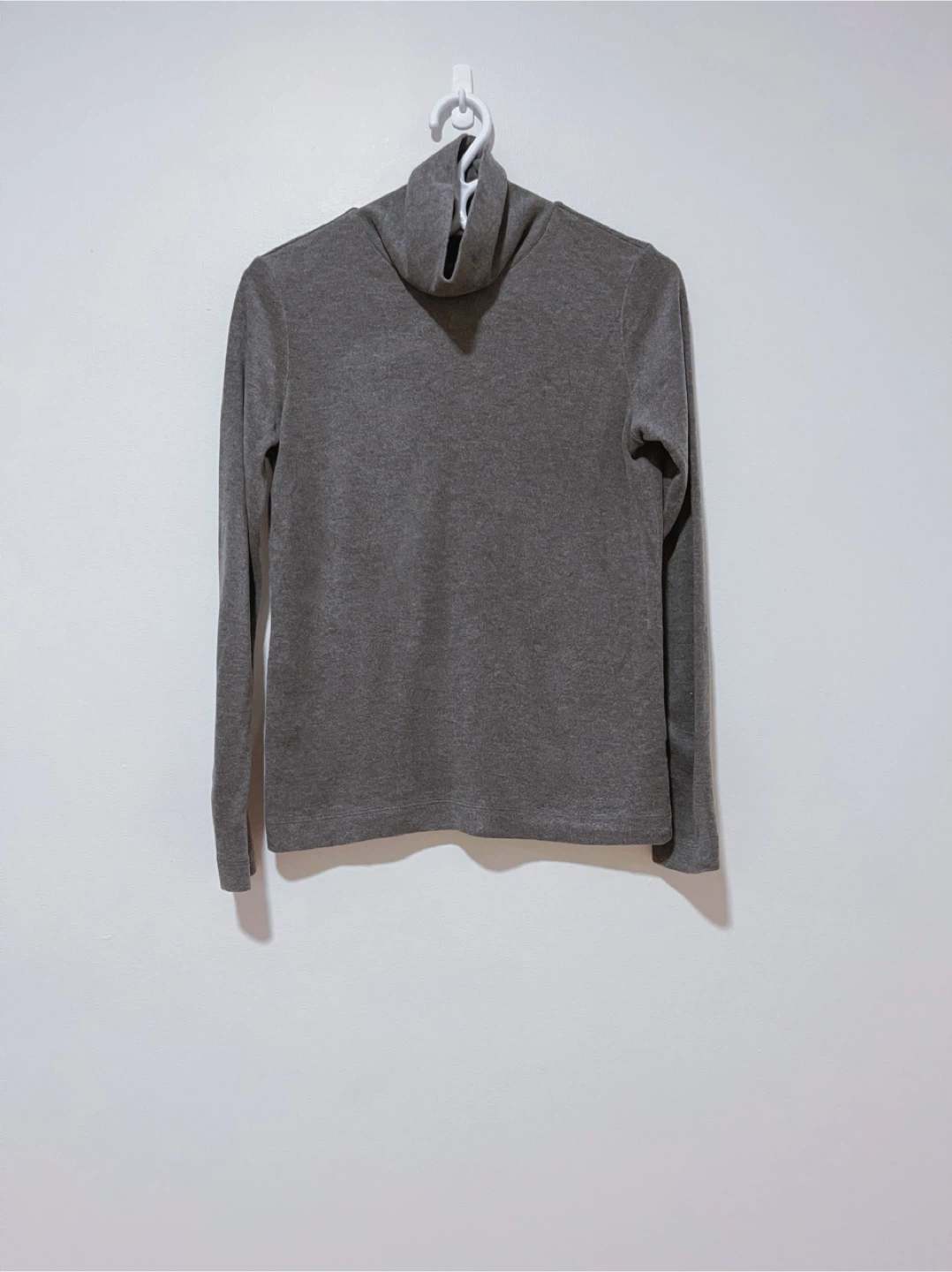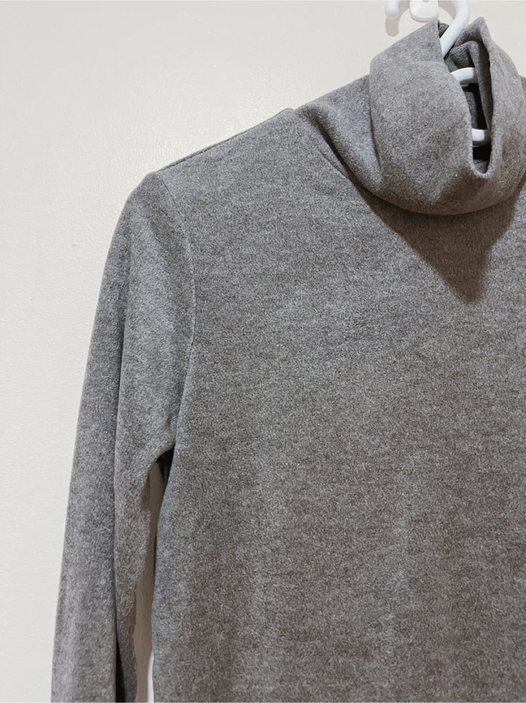 -The turtleneck is a neutral grey.