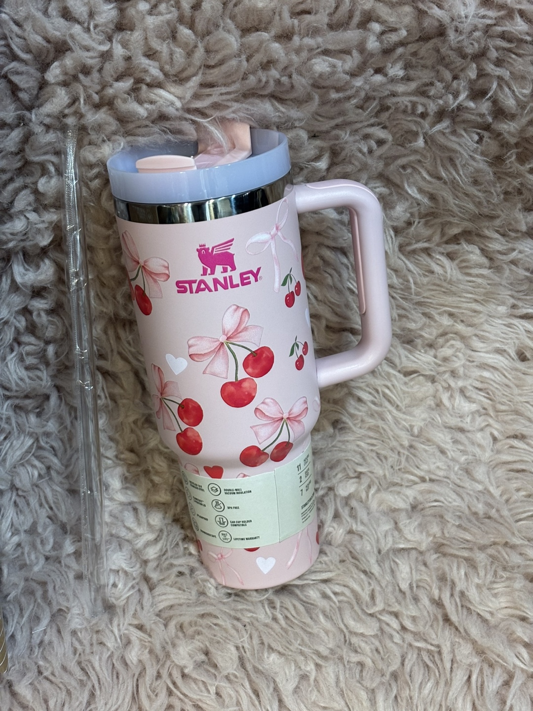 Selling a Stanley The Quencher H2.0 Flowstate Tumbler! It's a 40oz tumbler with a cute cherry design. Comes with a straw and the original box
