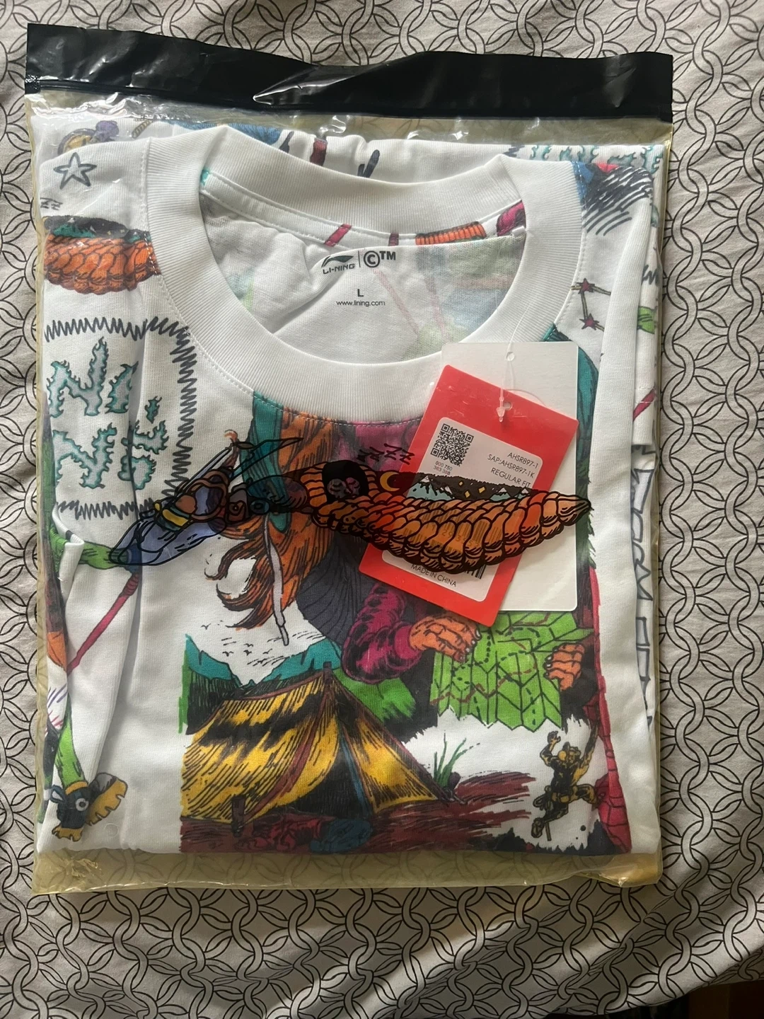 NEW (formally Chinatown Market) “Find Your Way” white multi-patterned tee size LARGE. Only taken out of packaging for pictures. The collab brand is controversial apparently, and I’ve had trouble listing bc of it 😅