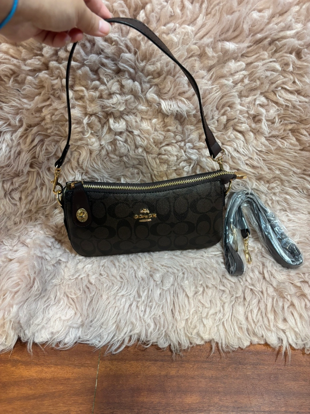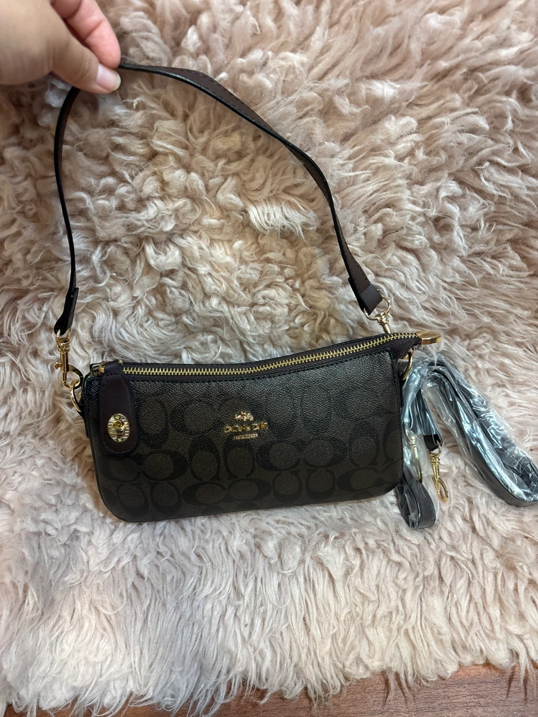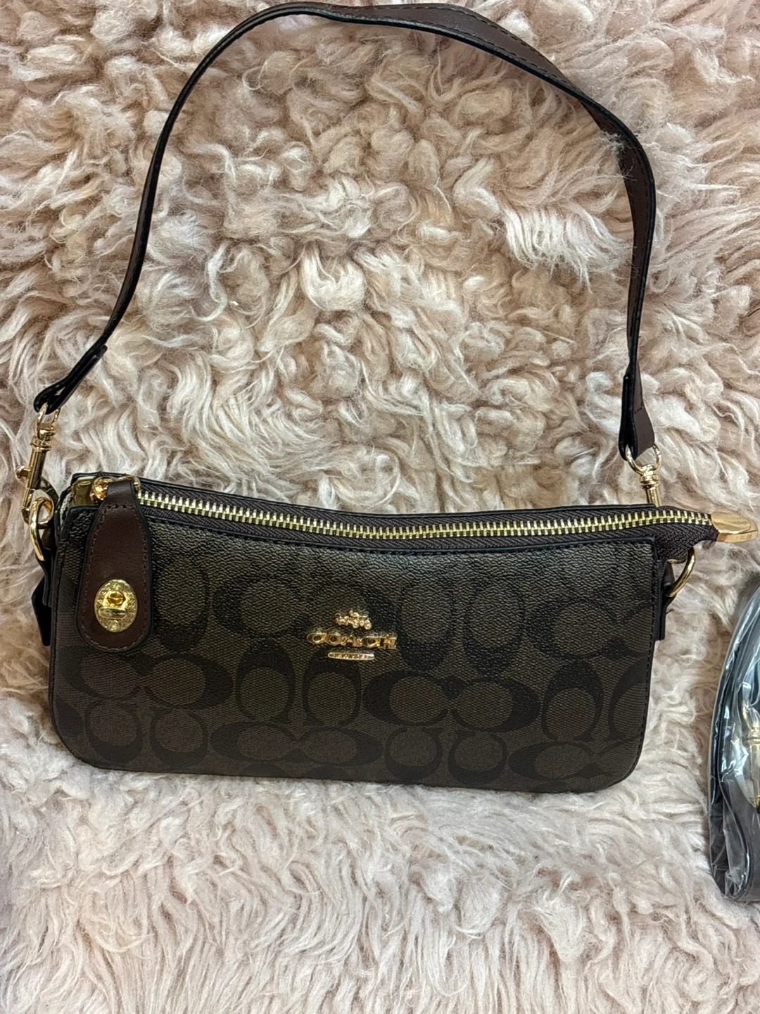 Selling a Coach wristlet in the signature jacquard pattern. It's in great condition and comes with the detachable strap. Perfect for carrying your essentials!